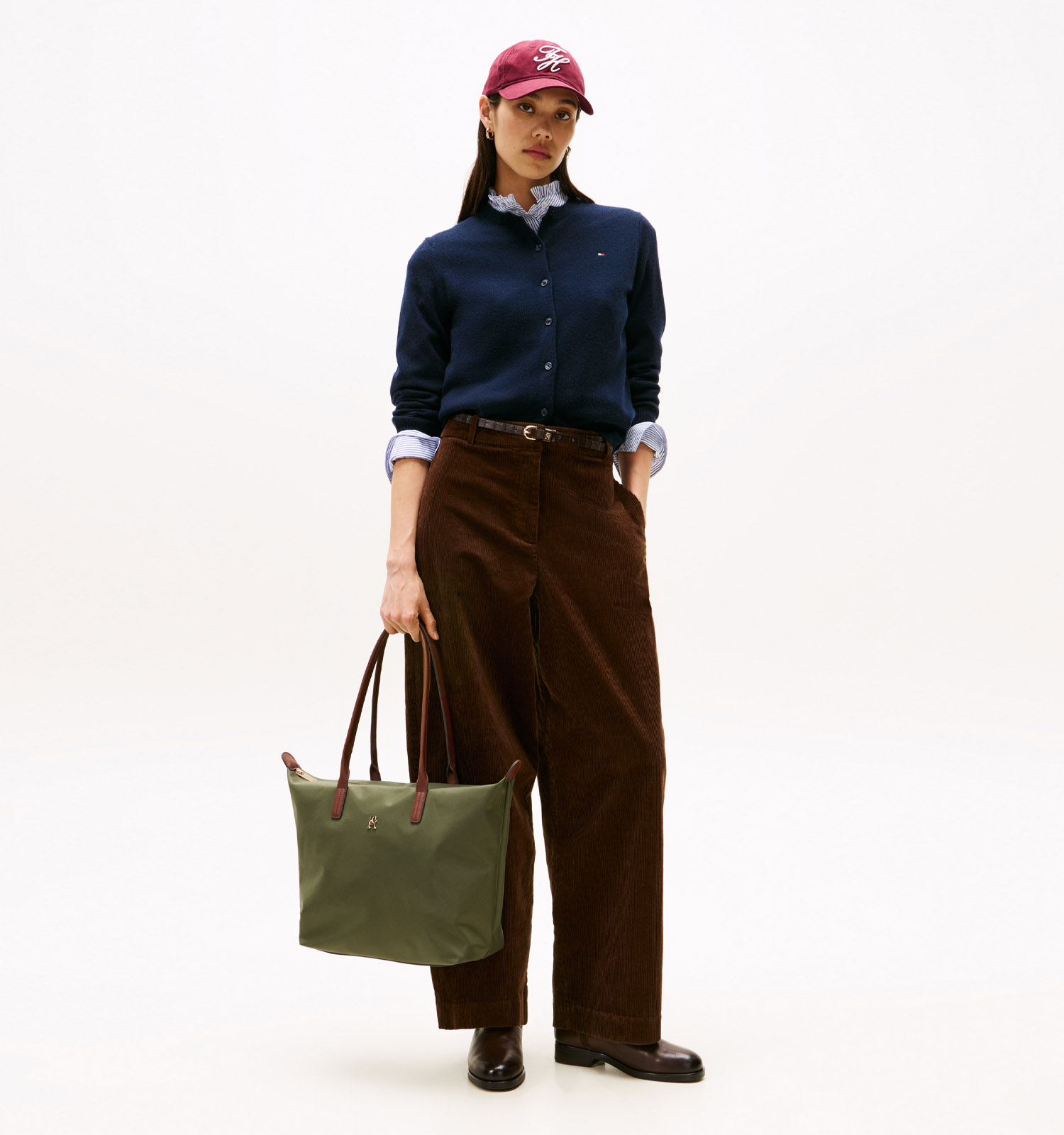 Tommy Hilfiger est connue dans le monde de la mode pour l'utilisation de matériaux de la plus haute qualité, de finitions précises et de designs tendance. Ce matériau (textile), s'il est correctement entretenu, restera beau pendant longtemps ! Ce cabas Tommy Hilfiger de couleur vert est doté d'une solide fermeture éclair. C'est indispensable, car cela permet de garder le contenu de votre sac en sécurité et protégé.