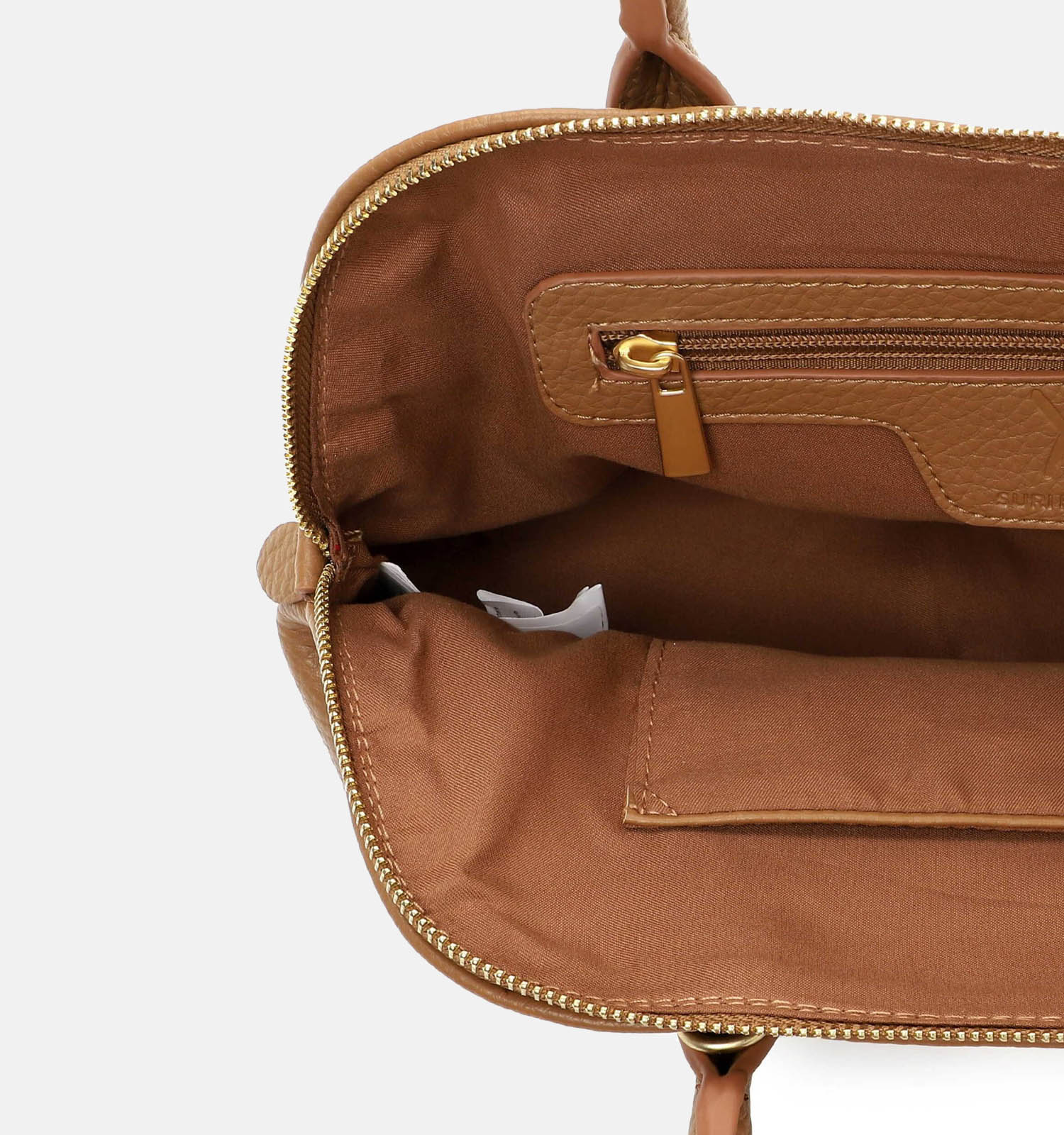 Un sac à main doit avant tout remplir deux fonctions : être fonctionnel et esthétique. Suri Frey vous présente cet exemple pour l'école. Ce sac à main en marron mesurant 35 cm par 14 cm par 18 cm, un modèle spacieux. Parfait pour celles qui aiment sortir préparées ! Il y a de la place pour tout ce que vous voulez emporter, par ex. des lunettes de soleil, quelques collations et/ou un petit parapluie. Son matériau souple (simili cuir) le rend également doux et confortable à porter. Ce sac en marron de la marque Suri Frey est un accessoire pratique et polyvalent ! Un incontournable.