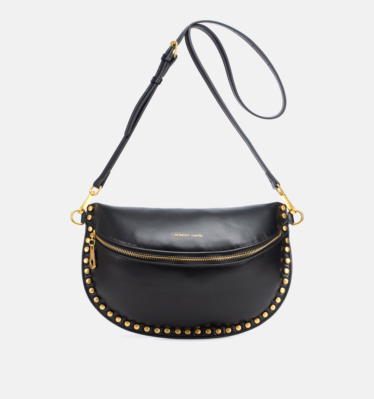 Vous serez totalement tendance avec ce sac Laurent David ! Ce modèle est relativement nouveau dans le paysage de la mode, mais il est déjà très apprécié. Ce sac en noir a la forme d'un sac banane mais ne peut être porté qu'en diagonale sur le corps, comme un sac porté croisé. La grande différence avec les sacs banane classiques est que vous pouvez ajuster parfaitement cette bandoulière à votre taille. La bandoulière est plus longue, ce qui vous permet de décider si vous voulez que le sac soit plus ou moins serré contre vous. Ce modèle en noir de la grande marque Laurent David est incontournable dans votre collection de sacs tendance !