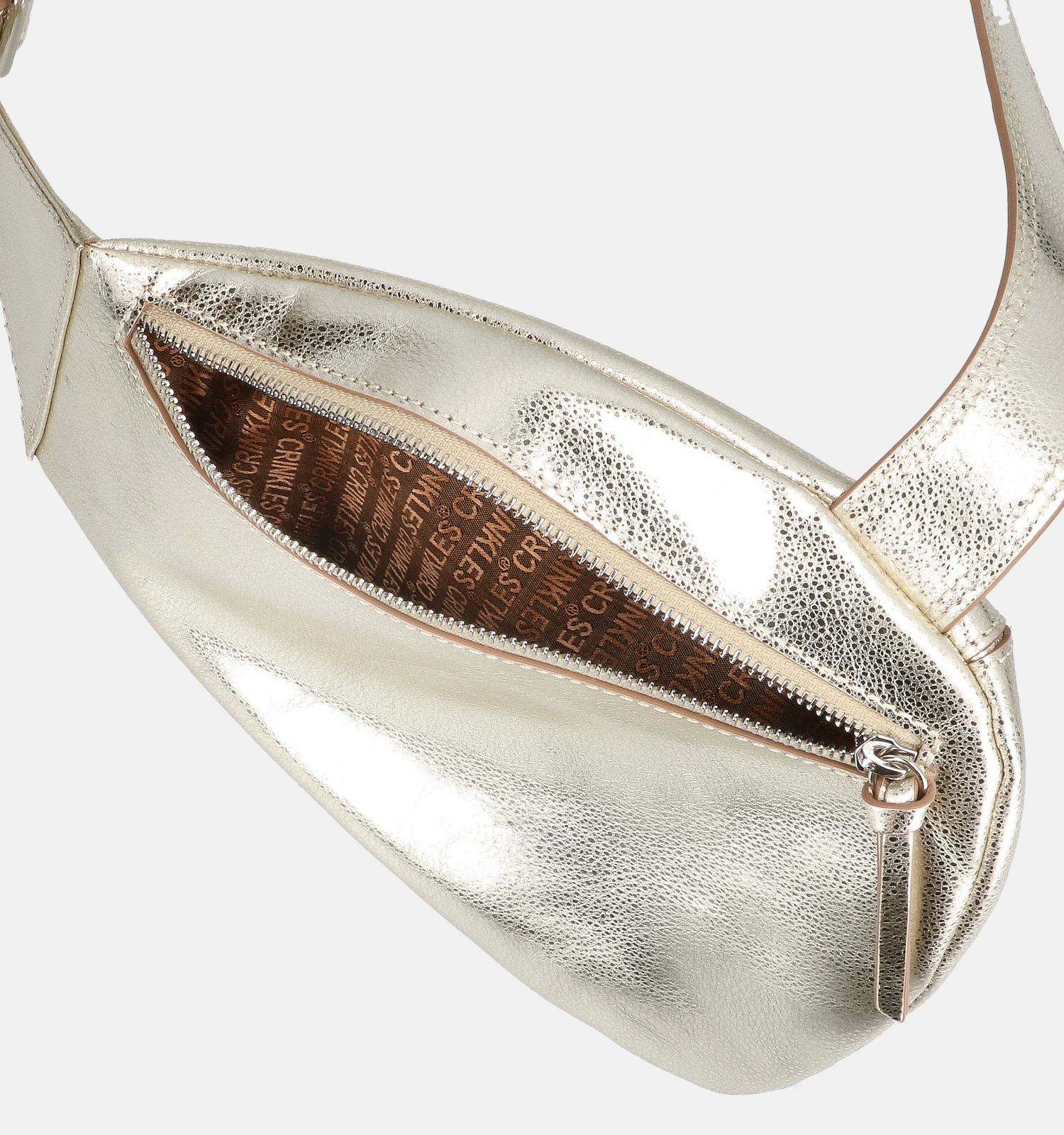 Ce petit sac porté croisé de la marque Crinkles est parfait pour vous si vous ne voulez emporter que l'essentiel. Ce sac en or de Crinkles peut contenir votre smartphone, votre portefeuille, vos clés et éventuellement d'autres petits objets comme des chewing-gums ou des mouchoirs. La taille optimale de 20 cm par 4 cm par 32 cm est idéale pour toutes vos affaires essentielles !