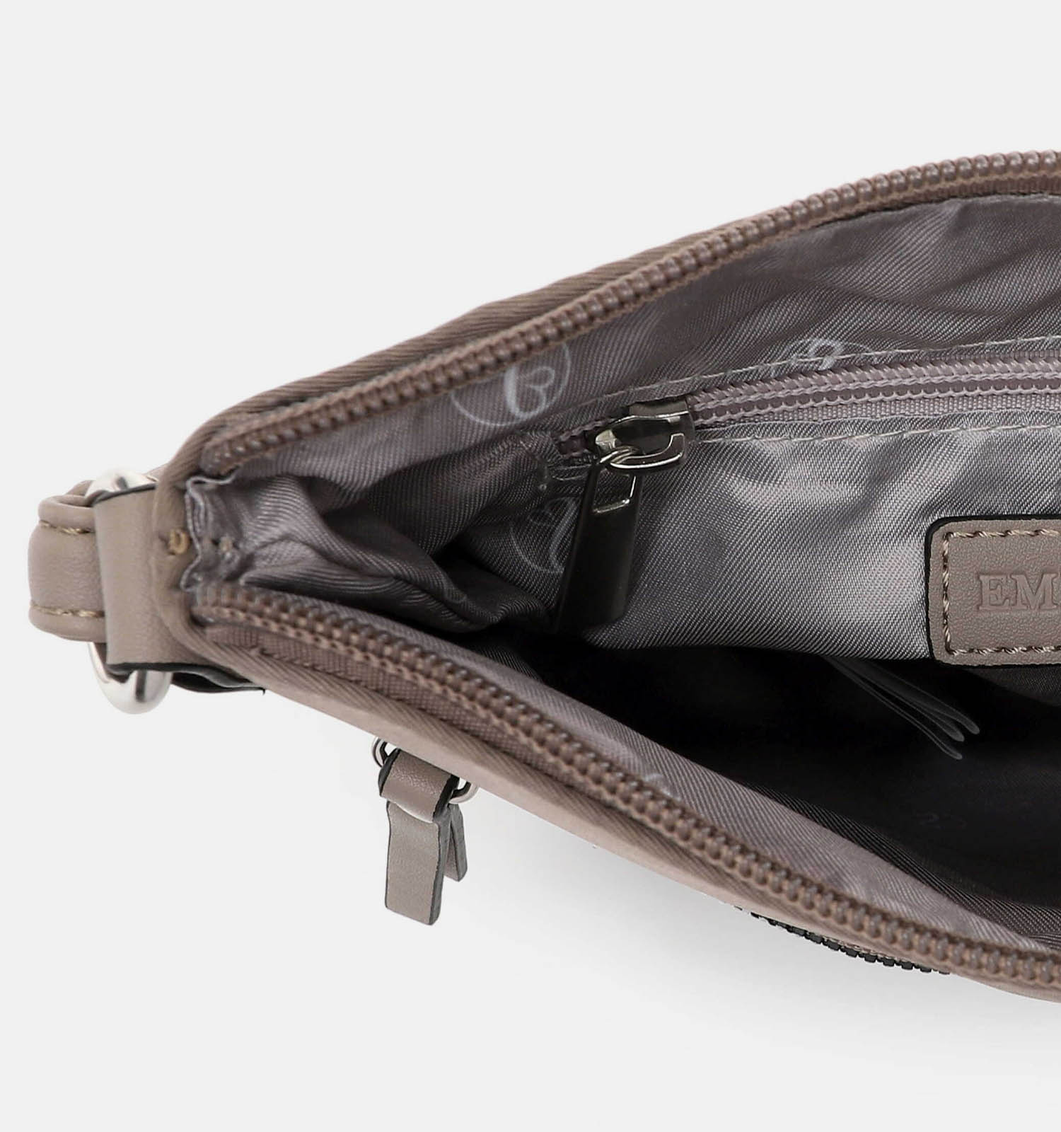 Ce petit sac porté croisé de la marque Emily & Noah est parfait pour vous si vous ne voulez emporter que l'essentiel. Ce sac en taupe de Emily & Noah peut contenir votre smartphone, votre portefeuille, vos clés et éventuellement d'autres petits objets comme des chewing-gums ou des mouchoirs. La taille optimale de 21 cm par 2 cm par 21 cm est idéale pour toutes vos affaires essentielles !