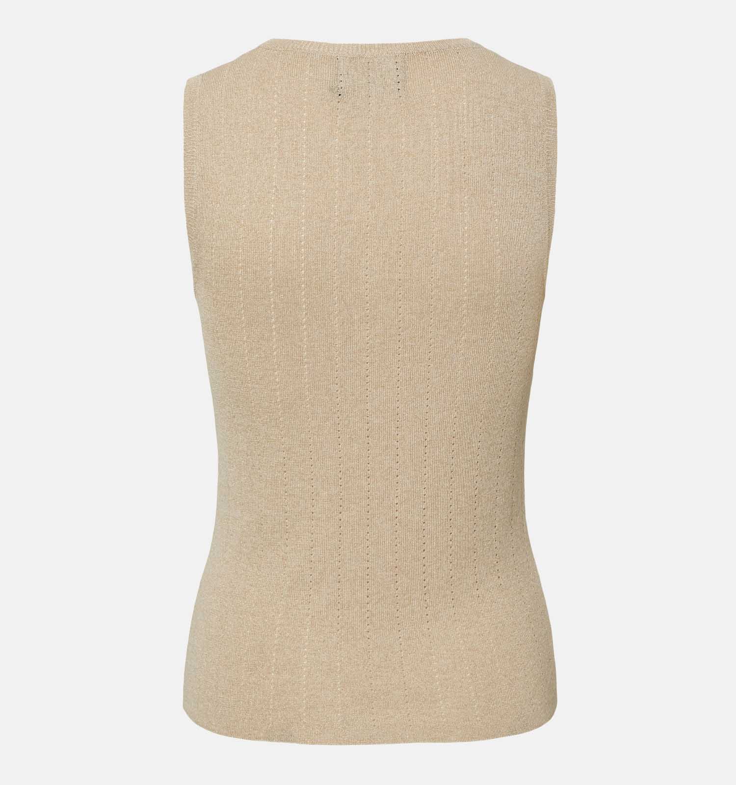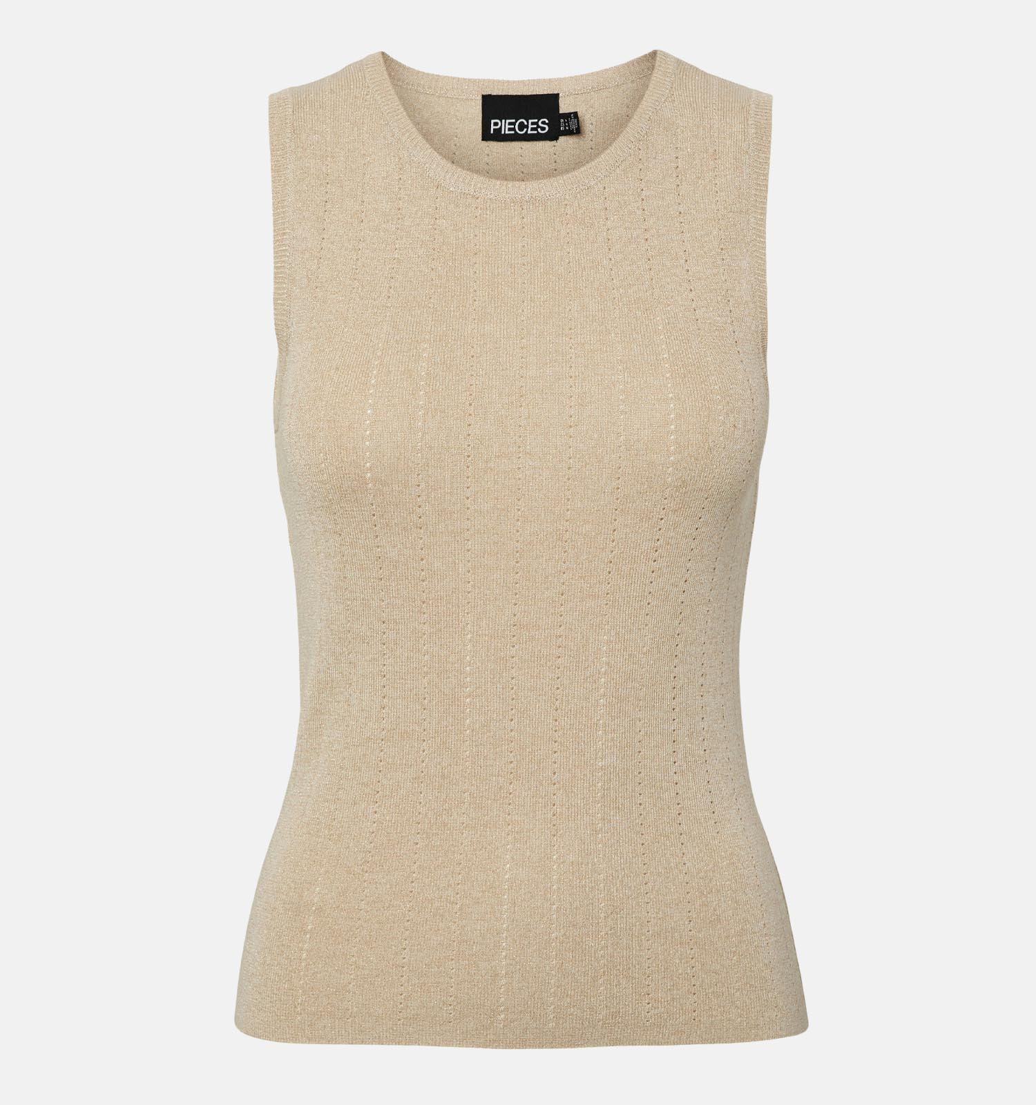 Ce petit haut en beige en fibre métalique, nylon, viscose de la marque de mode Pieces se porte selon vos envies, à tout moment. Un indispensable pour chaque saison ! Ce modèle a une coupe ajusté, idéal à porter tel quel au printemps et en été, ou comme couche de base sous une blouse ou une chemise en automne et en hiver. Il est facile de l'habiller en le combinant avec un jean élégant ou une jupe crayon fine de couleur neutre.?