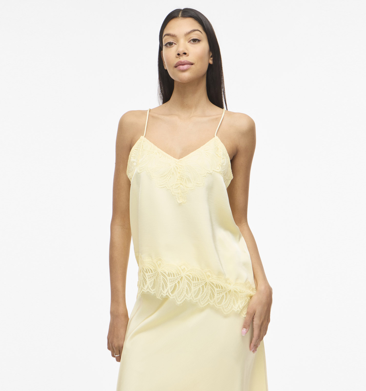 Ce haut pour femme avec une encolure col-en-v est féminin, élégant et met subtilement en valeur vos clavicules et vos épaules, offrant une allure gracieuse. Ce petit haut Vila de couleur jaune vous fera rayonner.?