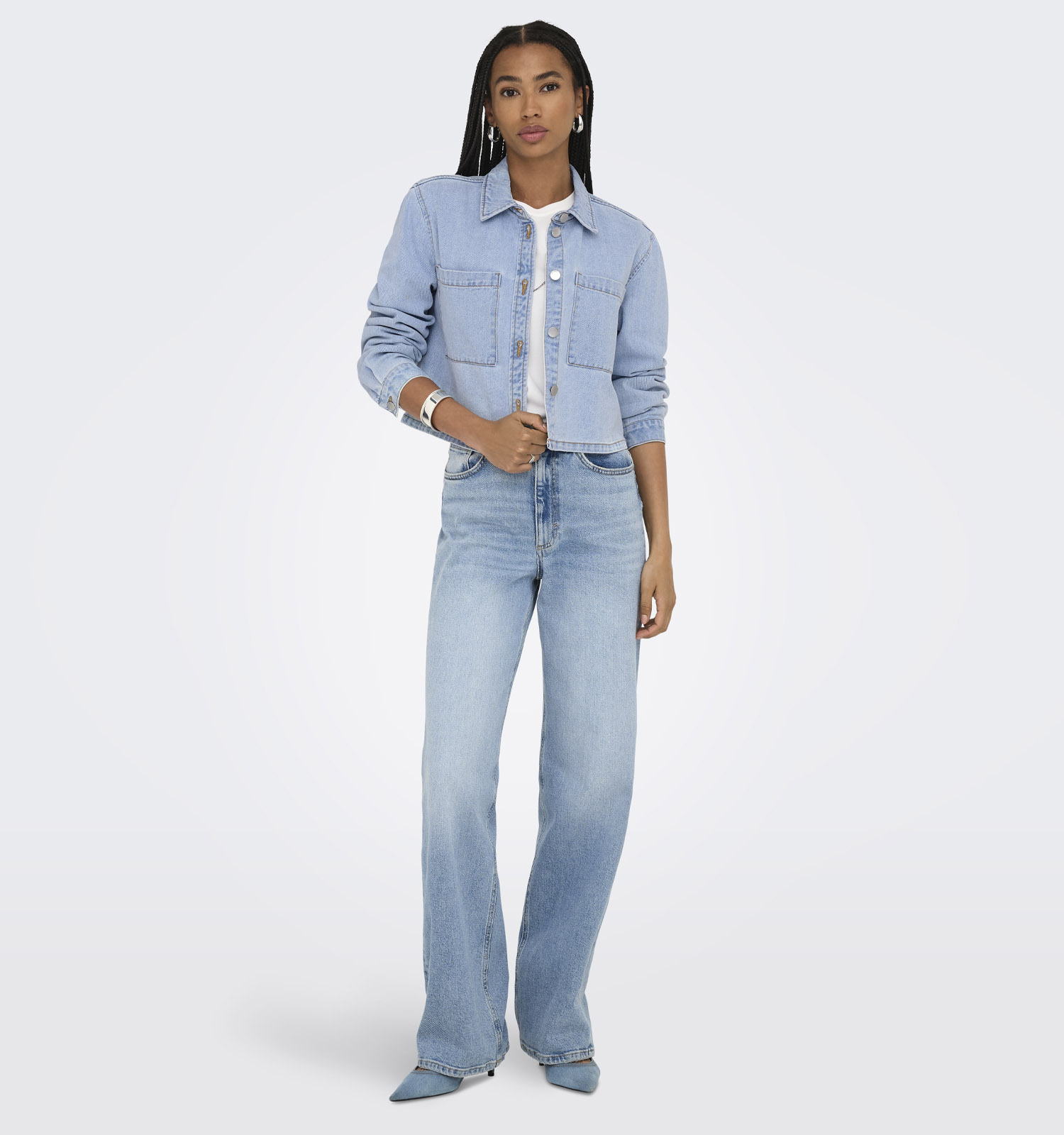 Cette veste en bleu pour femme a une coupe droit. Cette veste JDY a donc une très belle coupe, adaptée à toutes les morphologies. Si vous aimez porter de gros pulls confortables, nous vous recommandons de choisir une taille au-dessus pour un ajustement optimal.