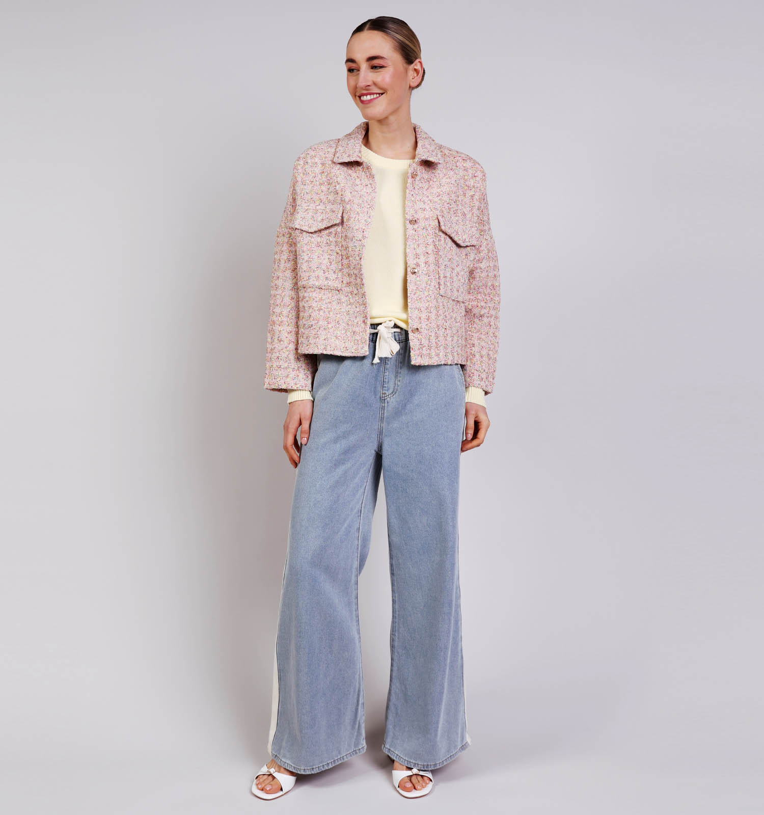 Cette veste en rose pour femme a une coupe droit. Cette veste Rue Mazarine a donc une très belle coupe, adaptée à toutes les morphologies. Si vous aimez porter de gros pulls confortables, nous vous recommandons de choisir une taille au-dessus pour un ajustement optimal.