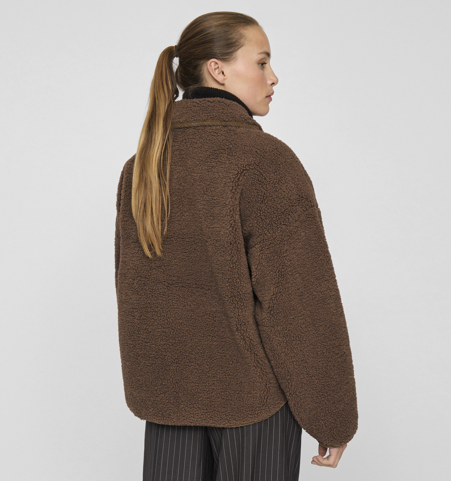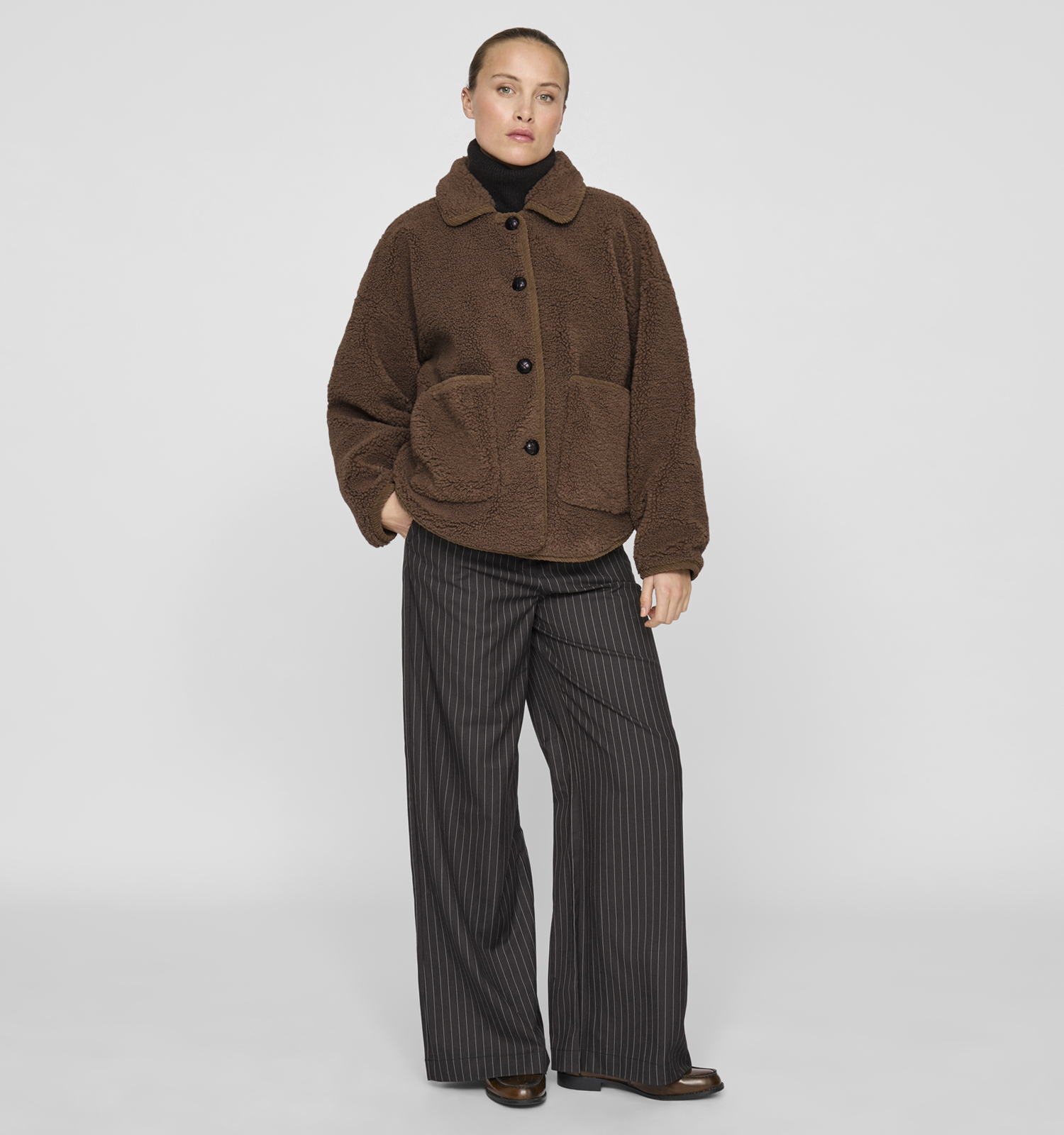 Cette veste en marron pour femme a une coupe fluide. Cette veste Vila a donc une très belle coupe, adaptée à toutes les morphologies. Si vous aimez porter de gros pulls confortables, nous vous recommandons de choisir une taille au-dessus pour un ajustement optimal.