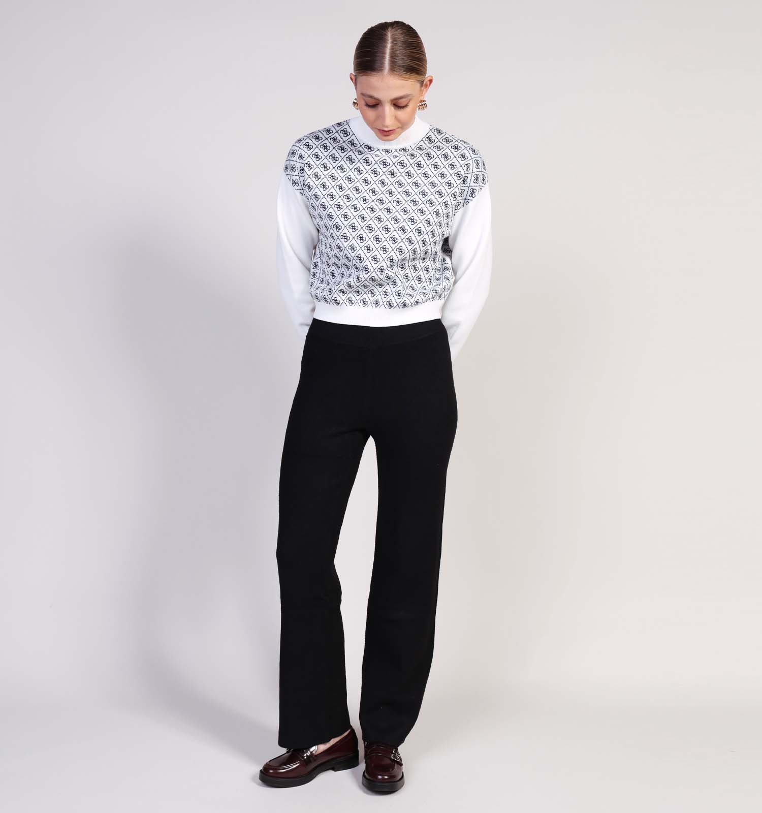 Ce pantalon tendance pour femmes a une taille taille mi-haute et une coupe droit, ce qui en fait un modèle universellement flatteur.