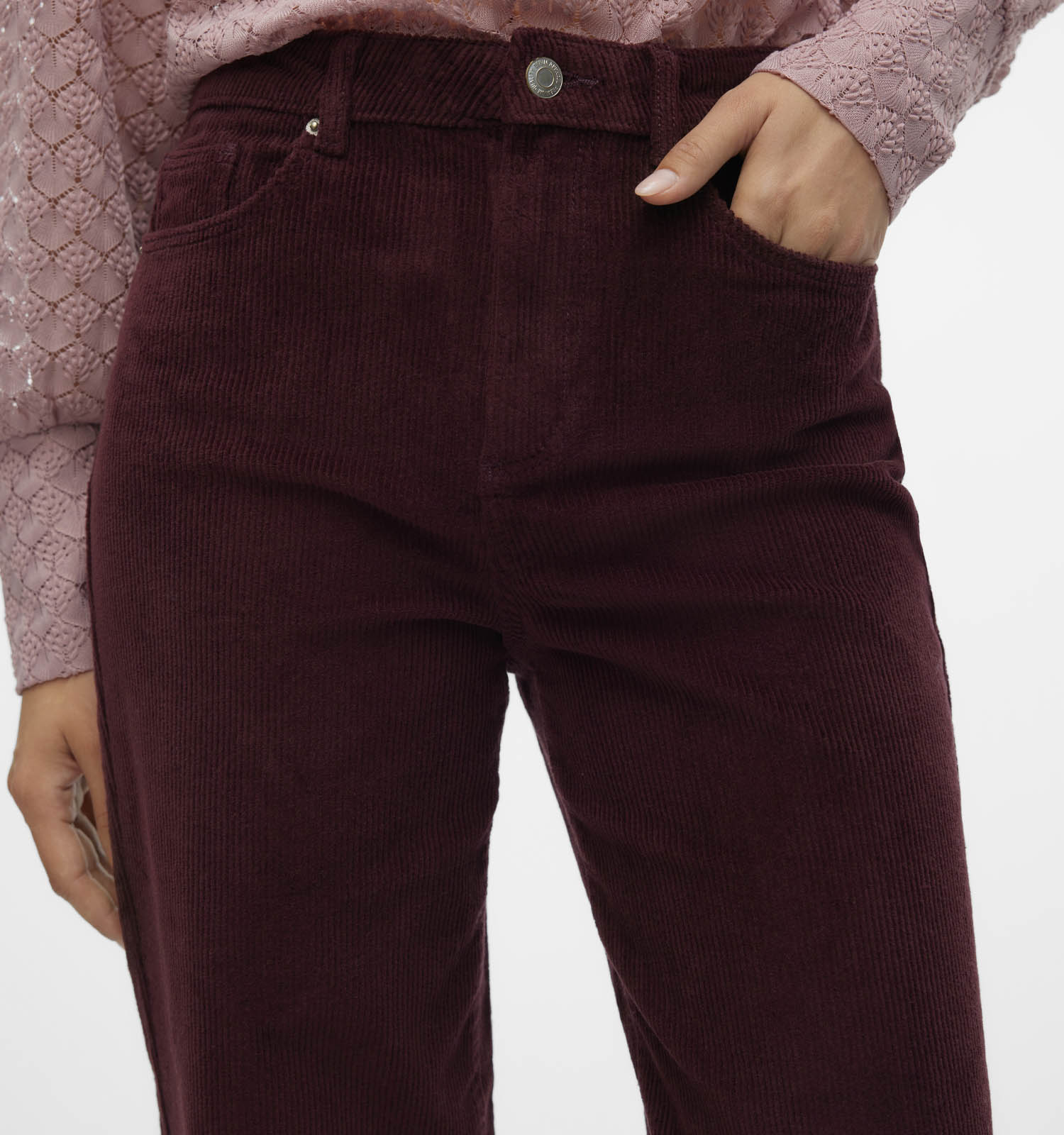 Cette tendance des années 90 est là pour rester cette fois-ci ! Les pantalons larges sont, depuis quelques saisons déjà, incontournables sur le podium. Avec ce pantalon de Vero Moda aux jambes larges, vous serez complètement tendance. L’effet chic-parisien de ce pantalon en bordeaux de Vero Moda vous permet de le combiner à votre guise. Avec une blouse soignée et une paire d’escarpins il est idéal pour le travail ou pour une fête ; un t-shirt avec imprimé graphique et une paire de baskets minimalistes lui donnent un effet plus décontracté, parfait pour votre temps libre.