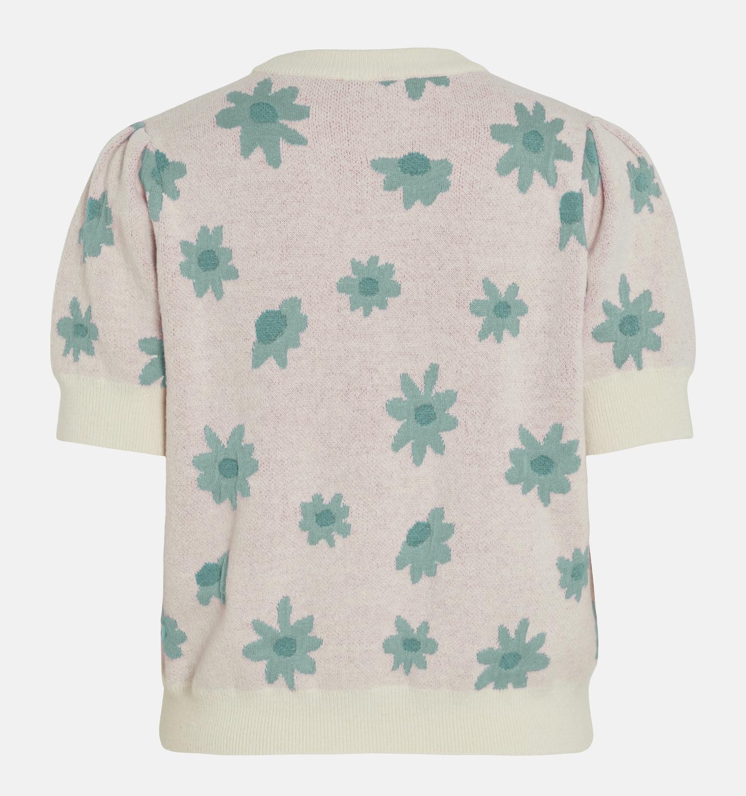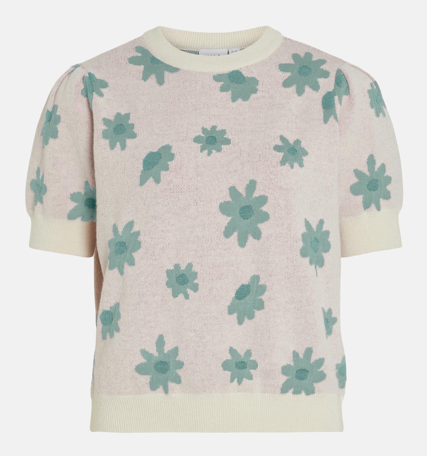 Ce pull Vila en couleur beige a un col rond et manches courtes.