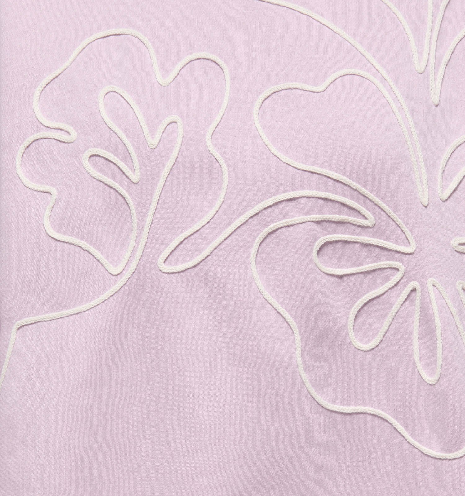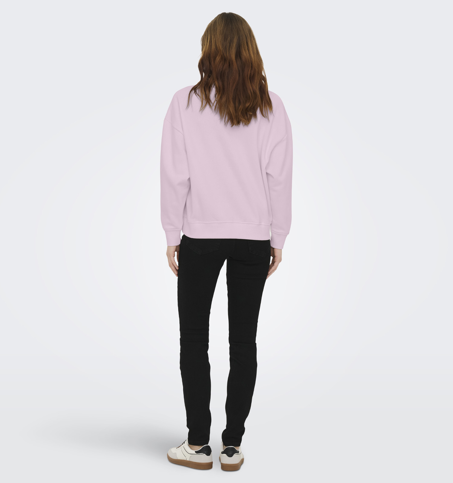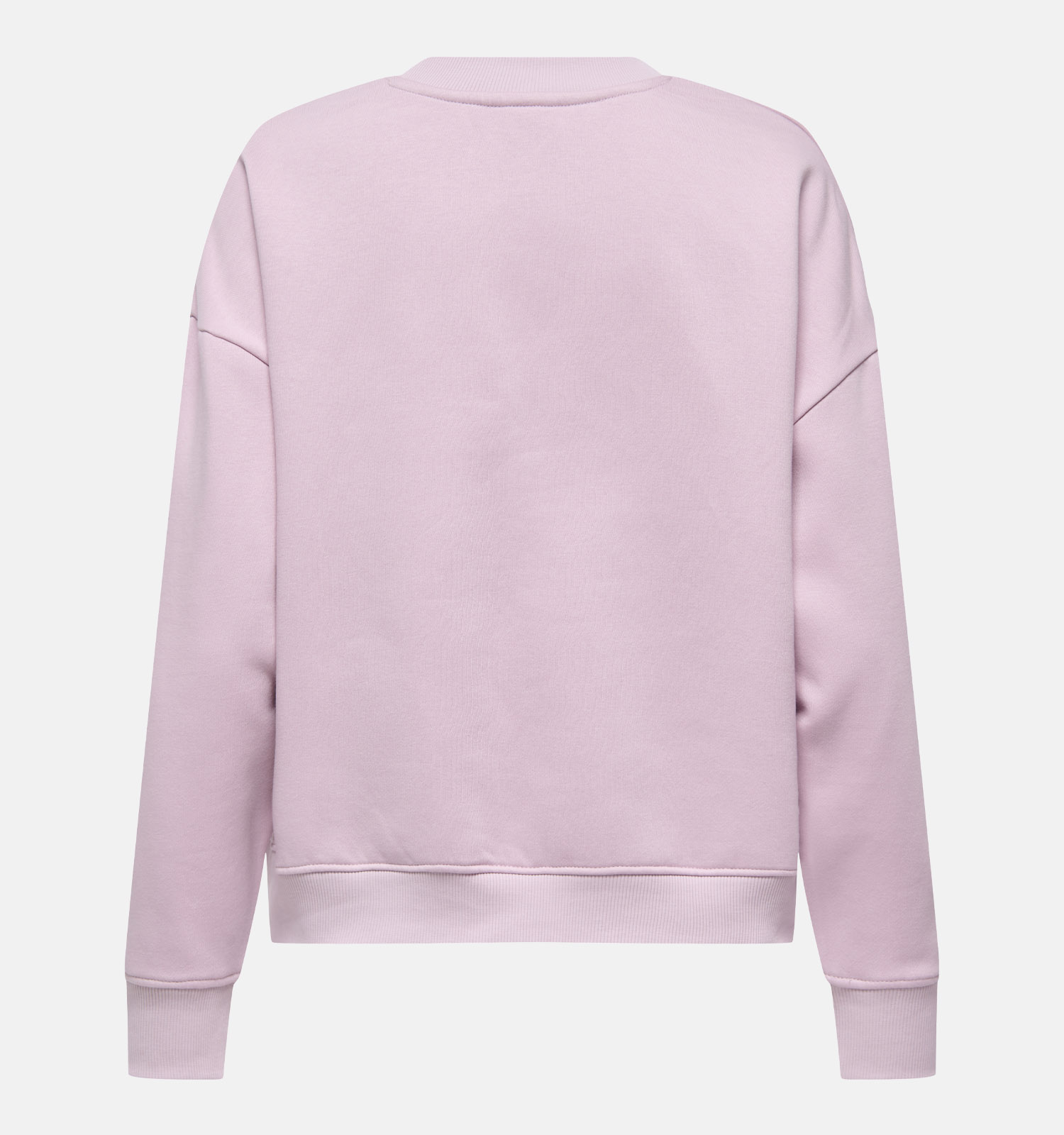 Ce pull pour femme en couleur rose a un col rond et manches longues.