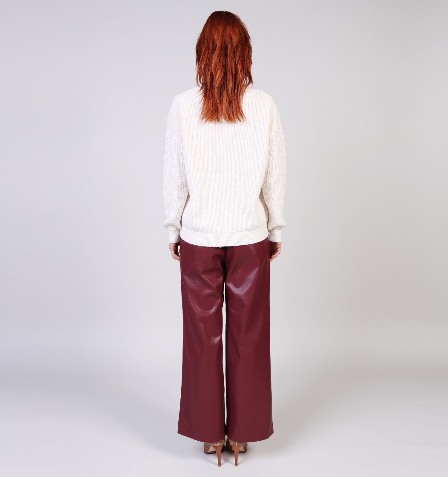 Une autre combinaison tendance est ce pull porté par-dessus une robe. Enfile ta robe préférée et ajoute ensuite une ceinture fine à la hauteur où tu veux que ce pull Vila se termine. C'est une question de goût : ça peut être à ta taille, juste au-dessus des hanches ou quelque part entre les deux. La partie inférieure du pull Vila, tu la glisses derrière la ceinture, et la partie supérieure, tu la fais légèrement blouser. Le résultat ? Tu as l'air encore plus stylée !