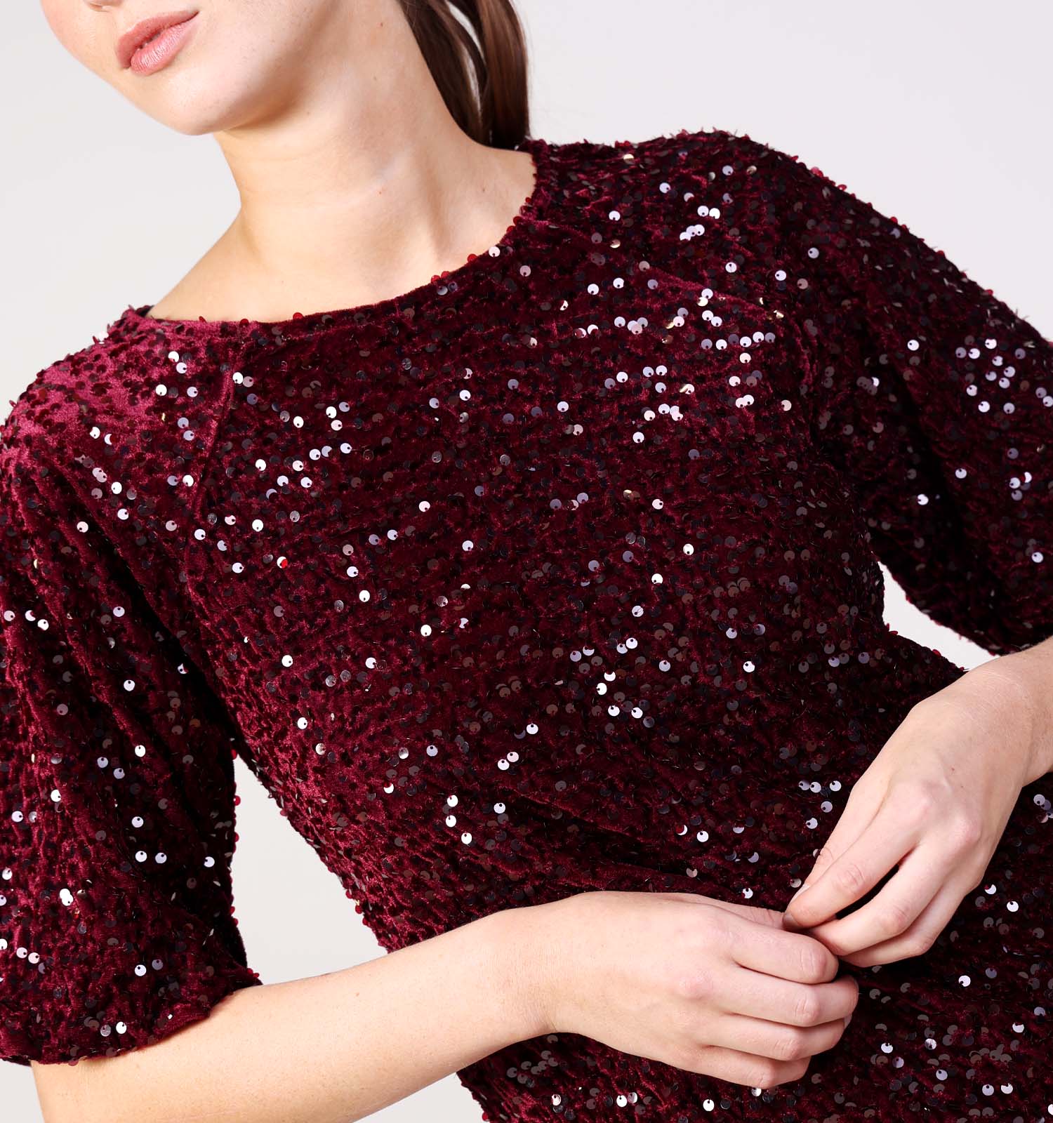 Pendant les chauds mois d'été, nous préférons porter une robe courte fraîche, jolie et tendance ! Toi aussi ? Cet exemplaire en bordeaux de la marque Pieces est le choix parfait pour ces journées de "jambes nues" et répond à toutes les attentes. Le matériau (polyester) est léger et doux au toucher. La magnifique couleur bordeaux n'est pas seulement tendance en ce moment, mais elle flatte aussi tout le monde. Ce modèle manches mi-longues arrive au-dessus des genoux. Cette petite robe courte Pieces a une coupe qui tombe droit.