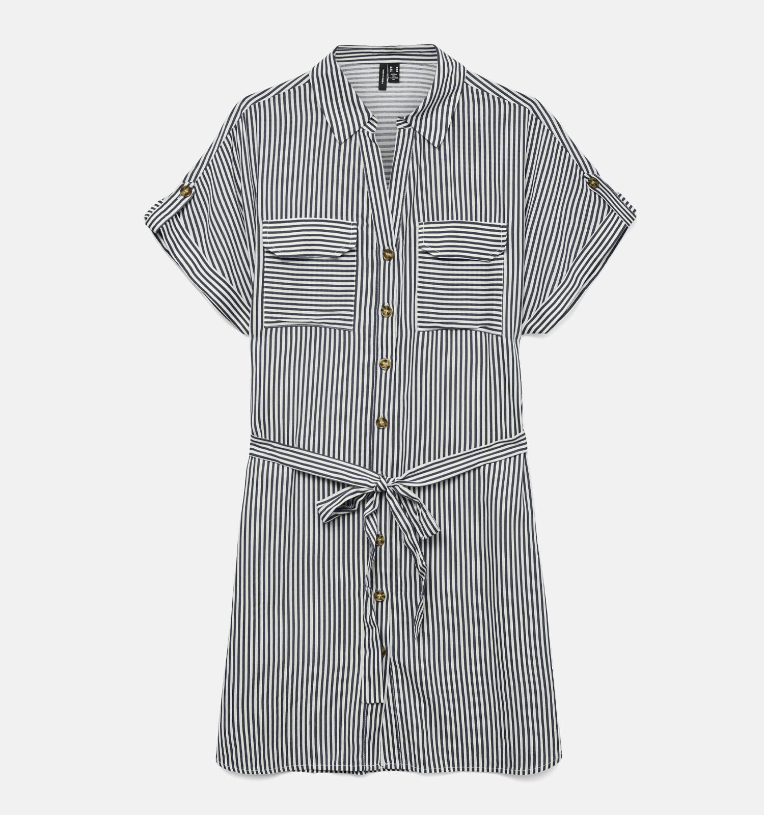 Cette robe-chemise en bleu de la marque Vero Moda est un best-seller ! Et ce n'est pas surprenant : sa silhouette est universellement flatteuse et la magnifique couleur en bleu met en valeur tous les teints. Le matériau (viscose) est doux au toucher, ce qui est toujours un cadeau bienvenu ! Bon à savoir : cette petite robe à rayures avec manches courtes a une coupe qui tombe droit.