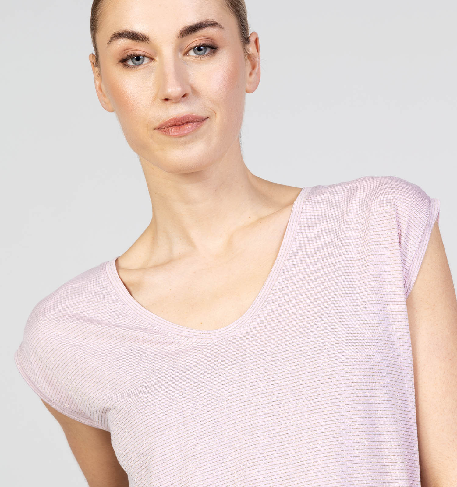 Ce T-shirt a manches courtes, ce qui vous permet de profiter de ce beau modèle toute l'année ! Autre point important : ce modèle Pieces a une coupe droit. Il convient donc à toutes les morphologies. Ce T-shirt en rose pour femmes a un joli col col-en-v que vous pouvez éventuellement mettre en valeur avec vos colliers préférés.