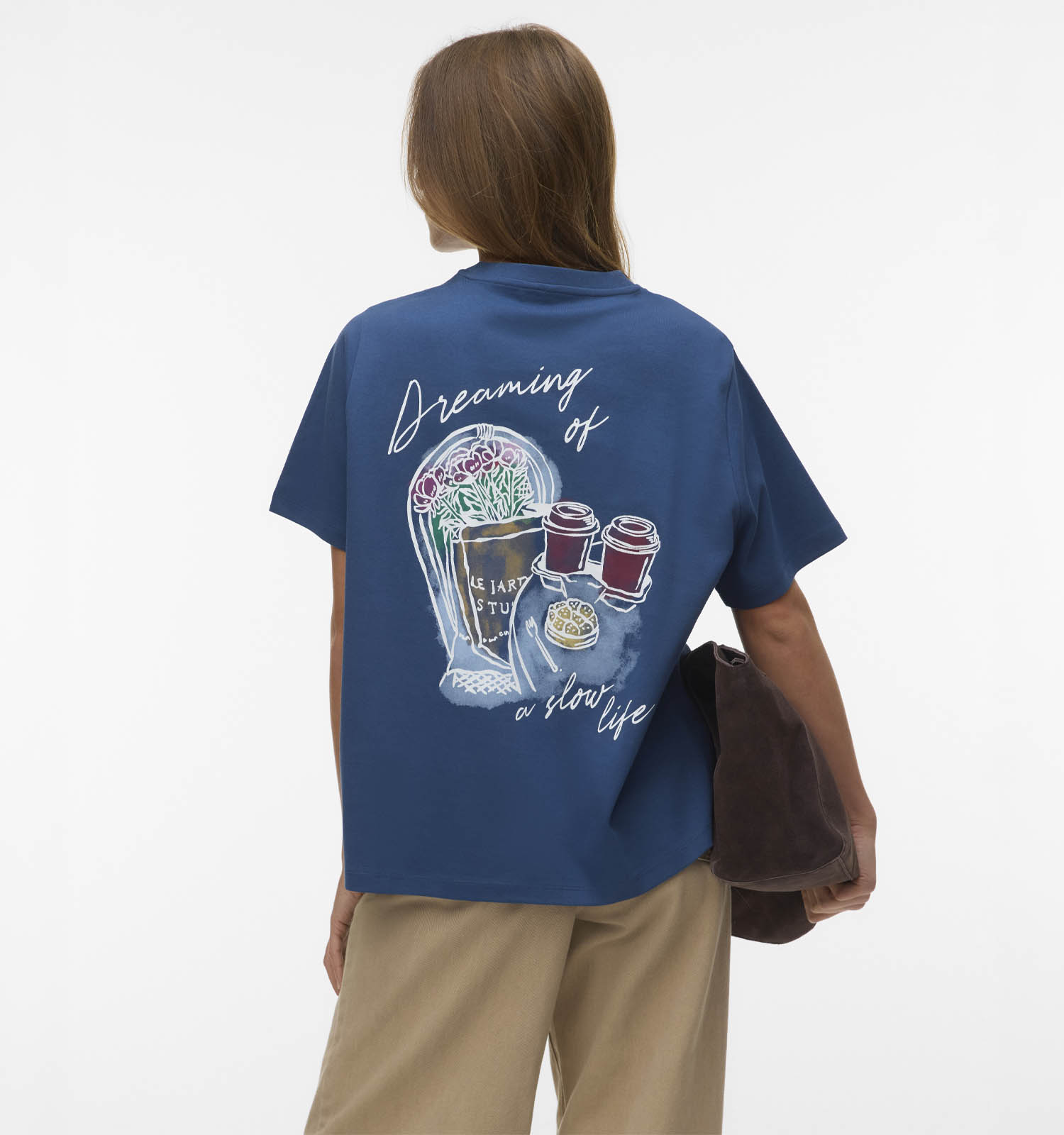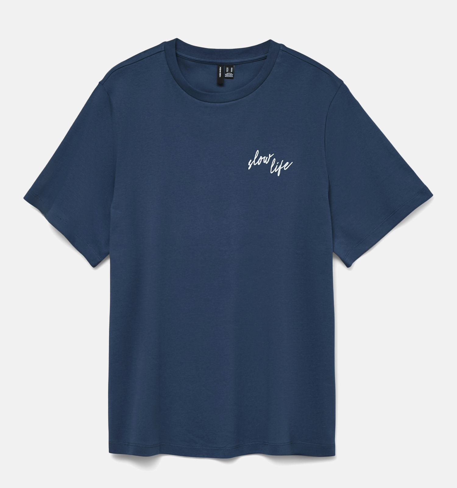 Ce T-shirt a manches courtes, ce qui vous permet de profiter de ce beau modèle toute l'année ! Autre point important : ce modèle Vero Moda a une coupe droit. Il convient donc à toutes les morphologies. Ce T-shirt en bleu pour femmes a un joli col col rond que vous pouvez éventuellement mettre en valeur avec vos colliers préférés.