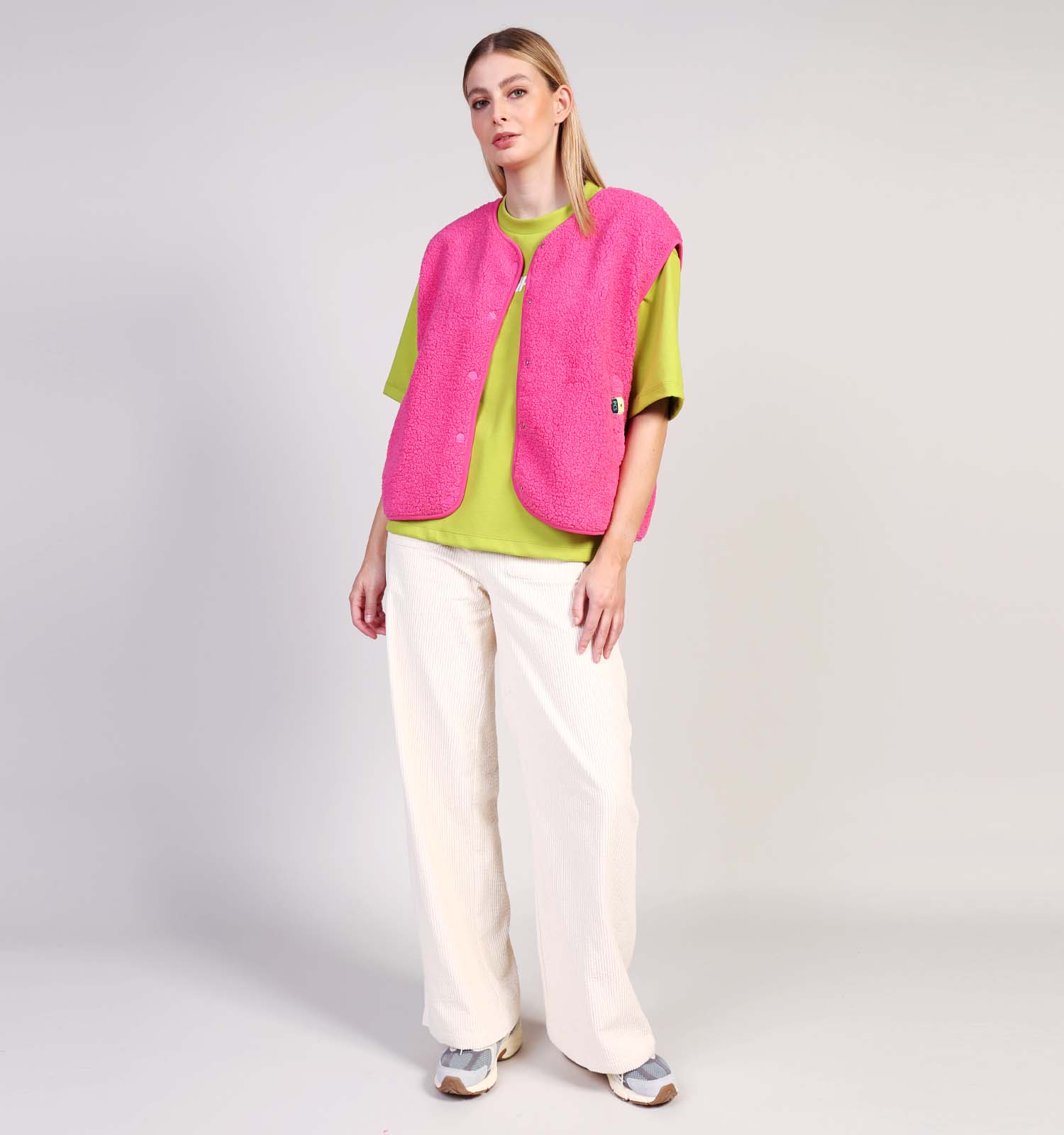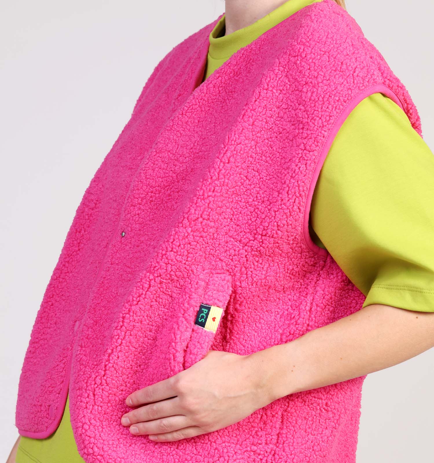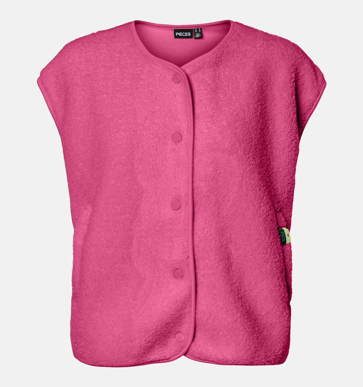 Ce gilet sans manches en couleur rose est fabriqué en polyester. Il s'agit donc d'une pièce polyvalente qui fonctionne aussi bien en été qu'en hiver ! Ce modèle en rose de Pieces tombe joliment droit sur le corps. Ce gilet tendance sans manches est le genre de pièce qui attire les compliments à chaque fois ! Un incontournable de Pieces.