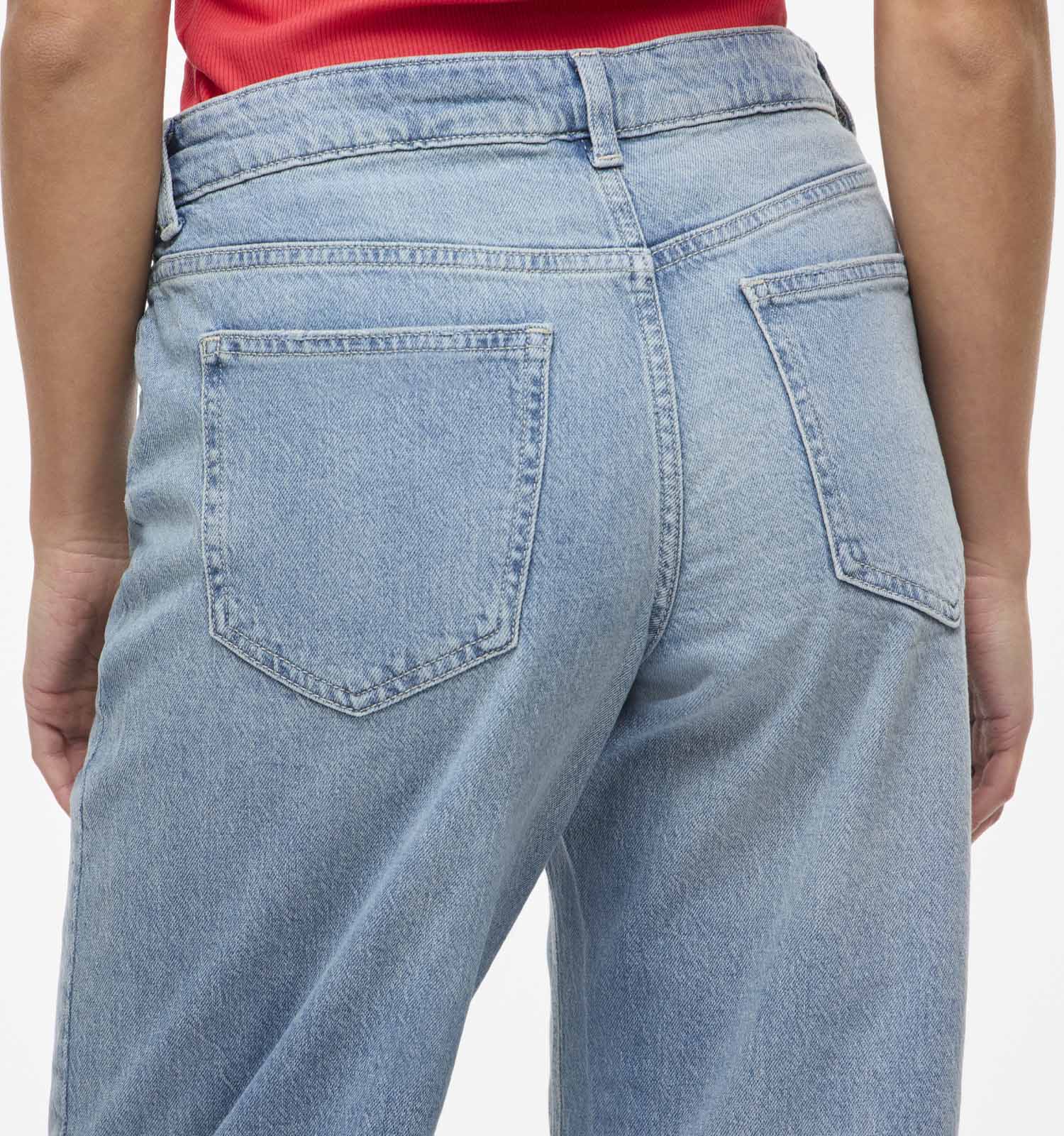 Ce jeans de Vila a une taille de et une coupe droit, ce qui en fait un modèle universellement flatteur. Ce jeans pour femme en bleu est également très confortable grâce au mélange de matières, ce qui en fait le pantalon parfait pour le bureau ou à porter pendant votre temps libre.