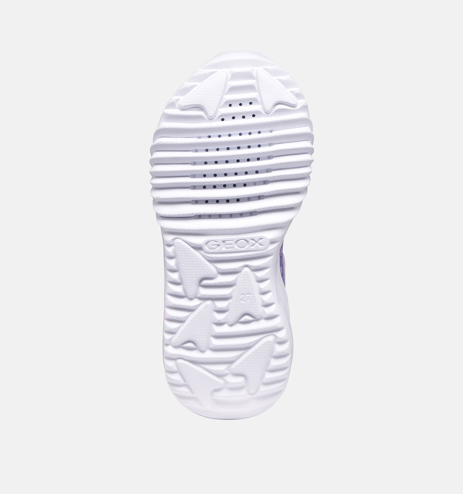 Ces baskets cool pour filles sont non seulement superbes, elles sont aussi très confortables ! Ces baskets en bleu pour filles sont dotées de la semelle brevetée Geox, qui évacue la transpiration grâce à des micro-trous dans la semelle extérieure. Les pieds des enfants restent donc secs toute la journée, même lorsqu'ils courent, grimpent, jouent et sautent ! Avec le confort de ces baskets respirants pour enfants pour filles, aucune aventure n'est plus trop folle. Vous sentirez que le talon de ces baskets Geox est légèrement renforcé. Cela permet de maintenir les pieds à leur place et de réduire le risque qu'ils se retournent.