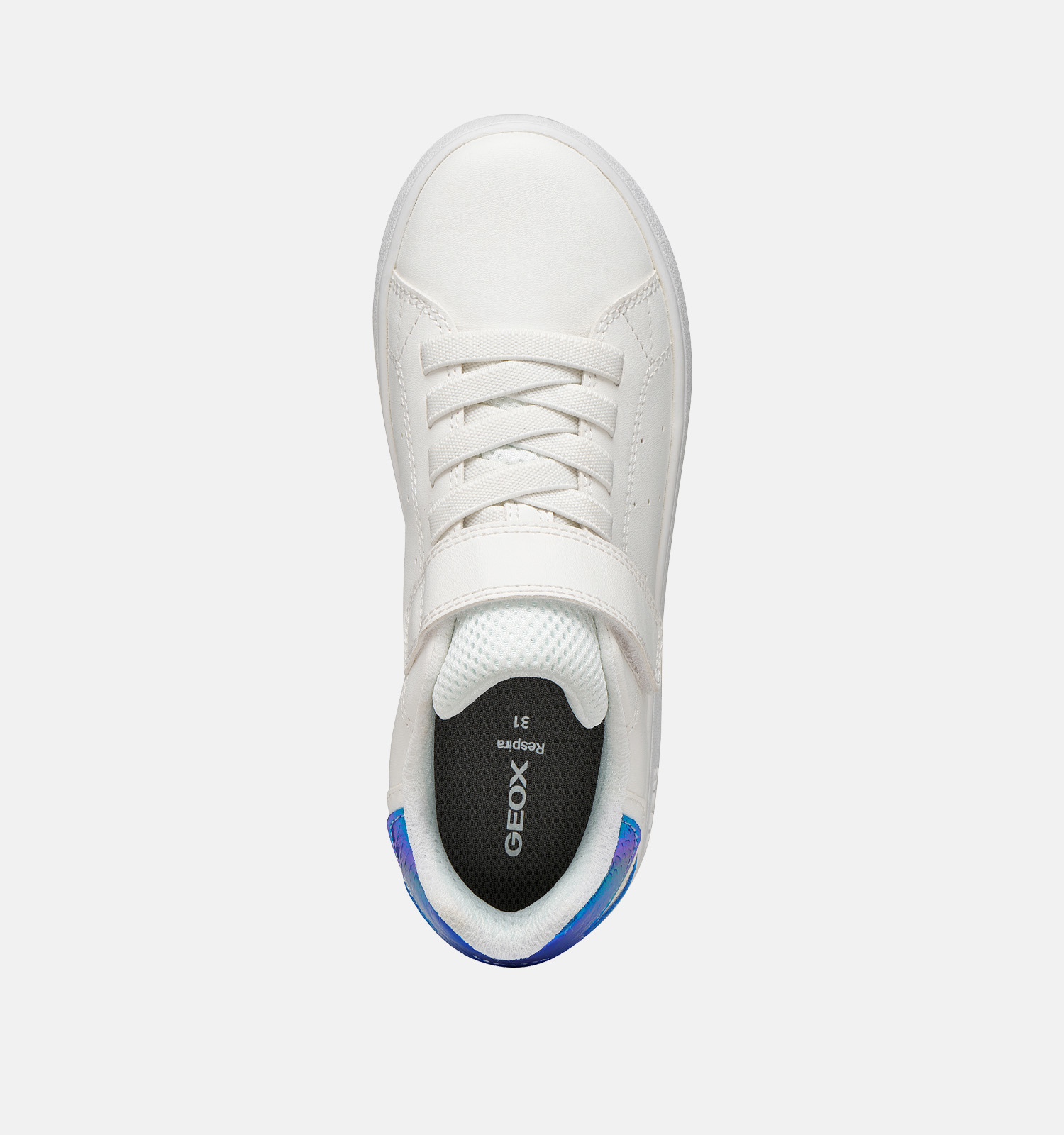 Ces baskets cool pour filles sont non seulement superbes, elles sont aussi très confortables ! Ces baskets en blanc pour filles sont dotées de la semelle brevetée Geox, qui évacue la transpiration grâce à des micro-trous dans la semelle extérieure. Les pieds des enfants restent donc secs toute la journée, même lorsqu'ils courent, grimpent, jouent et sautent ! Avec le confort de ces baskets respirants pour enfants pour filles, aucune aventure n'est plus trop folle. Vous sentirez que le talon de ces baskets Geox est légèrement renforcé. Cela permet de maintenir les pieds à leur place et de réduire le risque qu'ils se retournent.