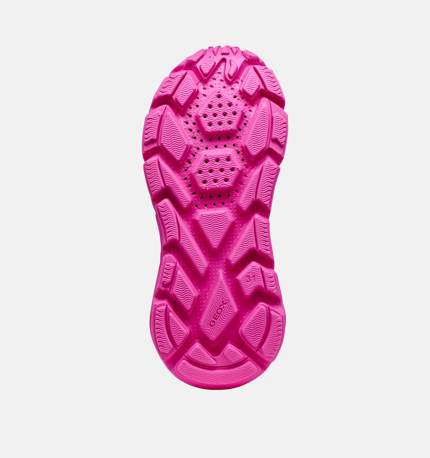 Ces baskets cool pour filles sont non seulement superbes, elles sont aussi très confortables ! Ces baskets en rose pour filles sont dotées de la semelle brevetée Geox, qui évacue la transpiration grâce à des micro-trous dans la semelle extérieure. Les pieds des enfants restent donc secs toute la journée, même lorsqu'ils courent, grimpent, jouent et sautent ! Avec le confort de ces baskets respirants pour enfants pour filles, aucune aventure n'est plus trop folle. Vous sentirez que le talon de ces baskets Geox est légèrement renforcé. Cela permet de maintenir les pieds à leur place et de réduire le risque qu'ils se retournent.