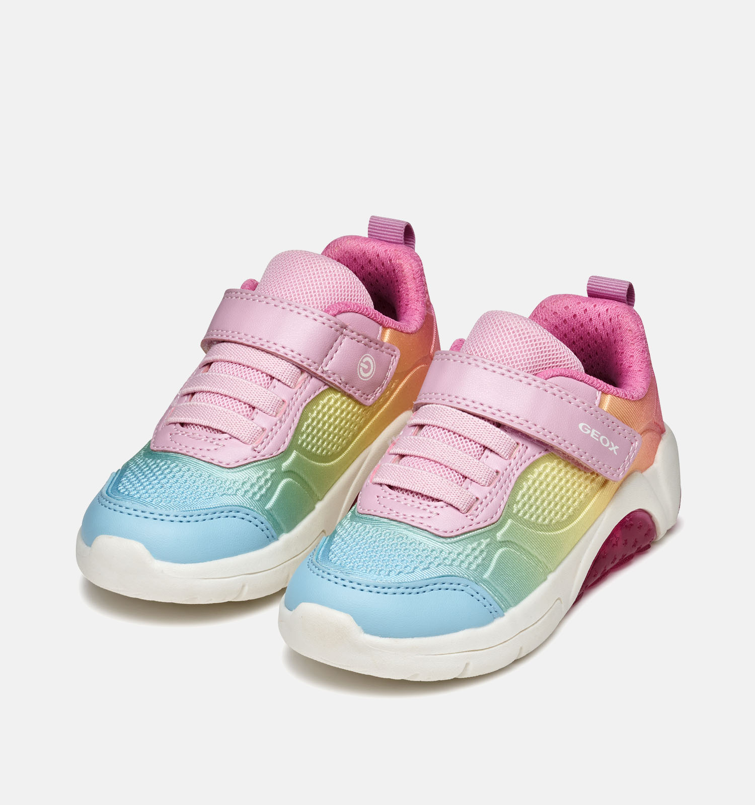 Ces baskets cool pour filles sont non seulement superbes, elles sont aussi très confortables ! Ces baskets en rose pour filles sont dotées de la semelle brevetée Geox, qui évacue la transpiration grâce à des micro-trous dans la semelle extérieure. Les pieds des enfants restent donc secs toute la journée, même lorsqu'ils courent, grimpent, jouent et sautent ! Avec le confort de ces baskets respirants pour enfants pour filles, aucune aventure n'est plus trop folle. Vous sentirez que le talon de ces baskets Geox est légèrement renforcé. Cela permet de maintenir les pieds à leur place et de réduire le risque qu'ils se retournent.