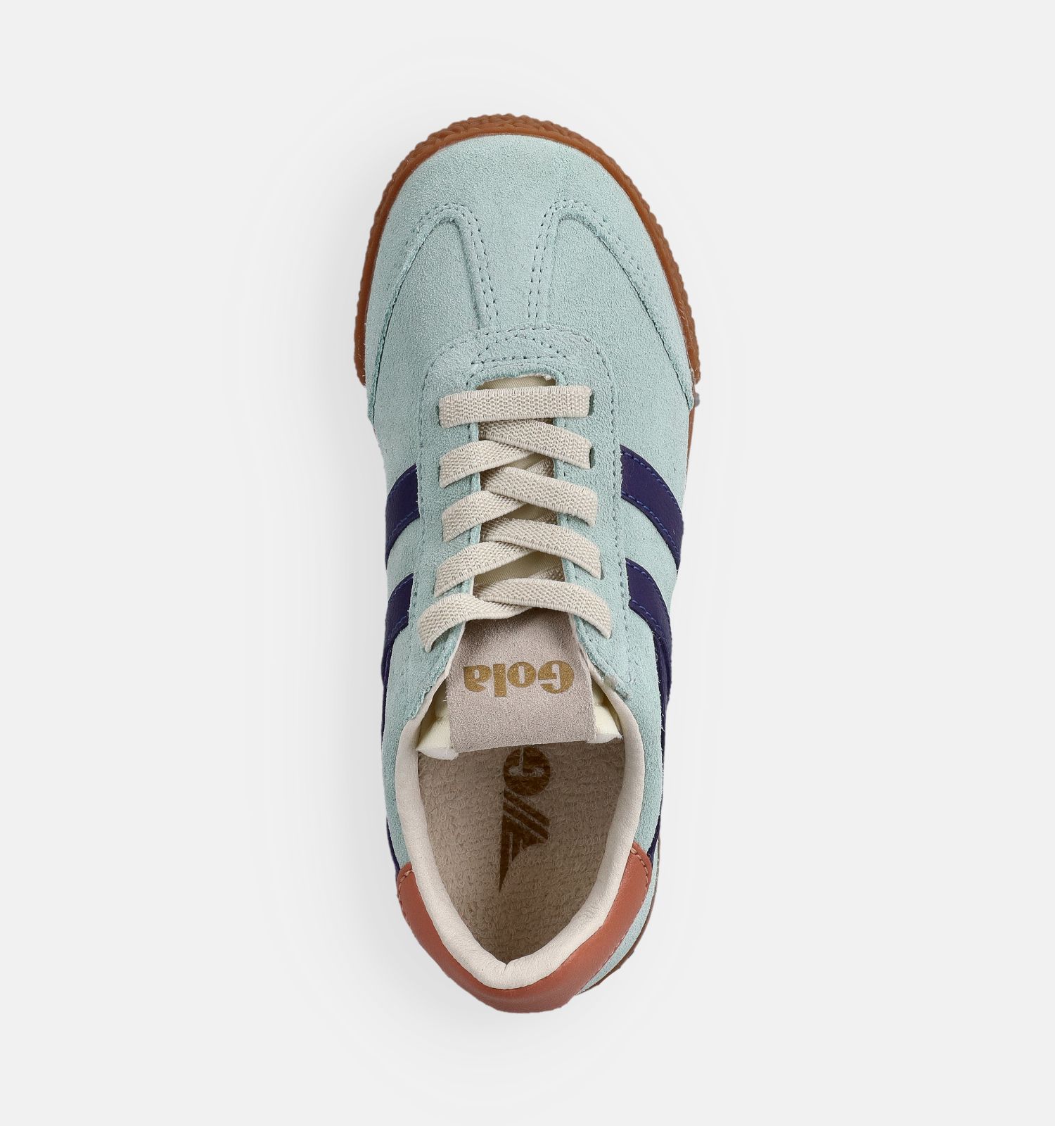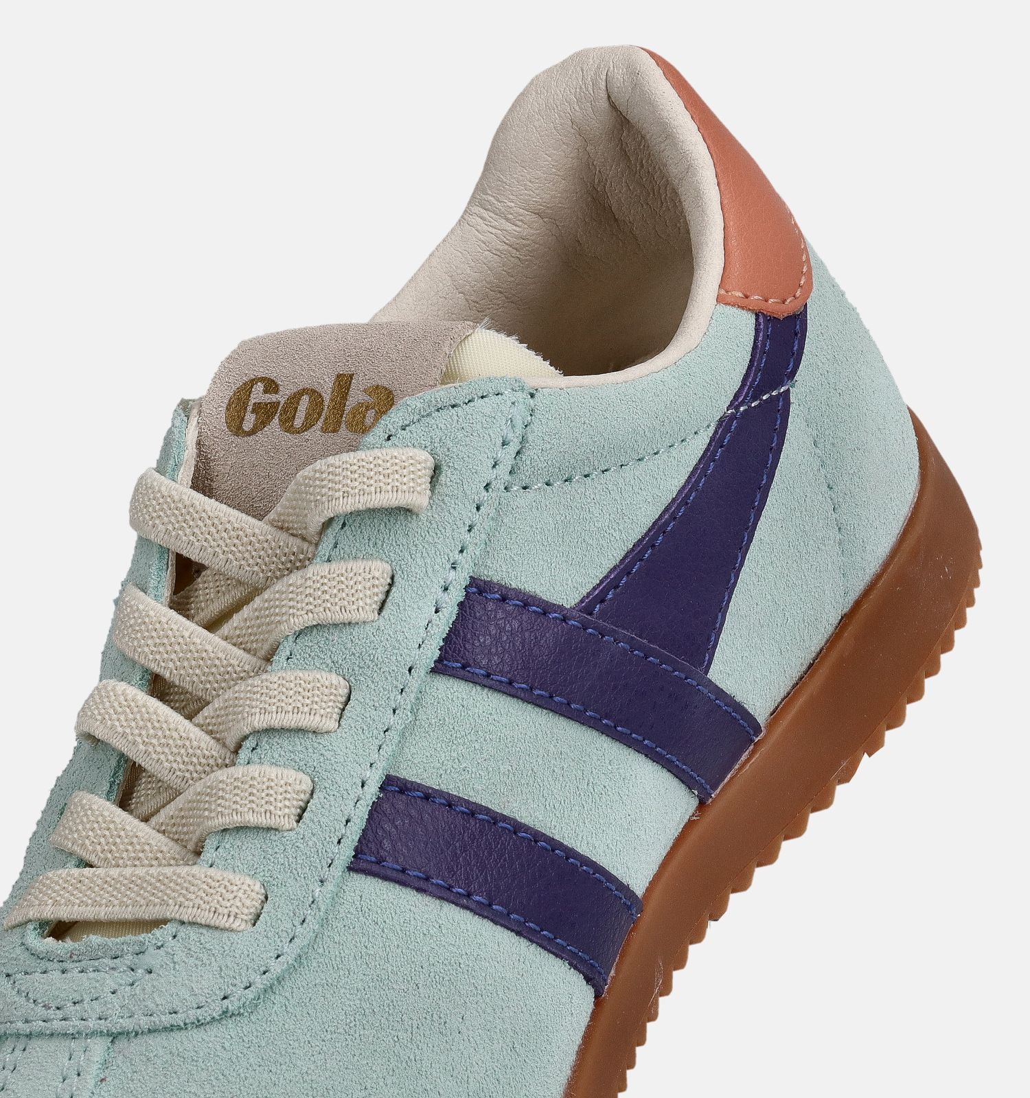 Ces baskets Gola pour filles sont fabriquées en daim solide. À l'intérieur, elles sont recouvertes de textile et de textile plus souples.
