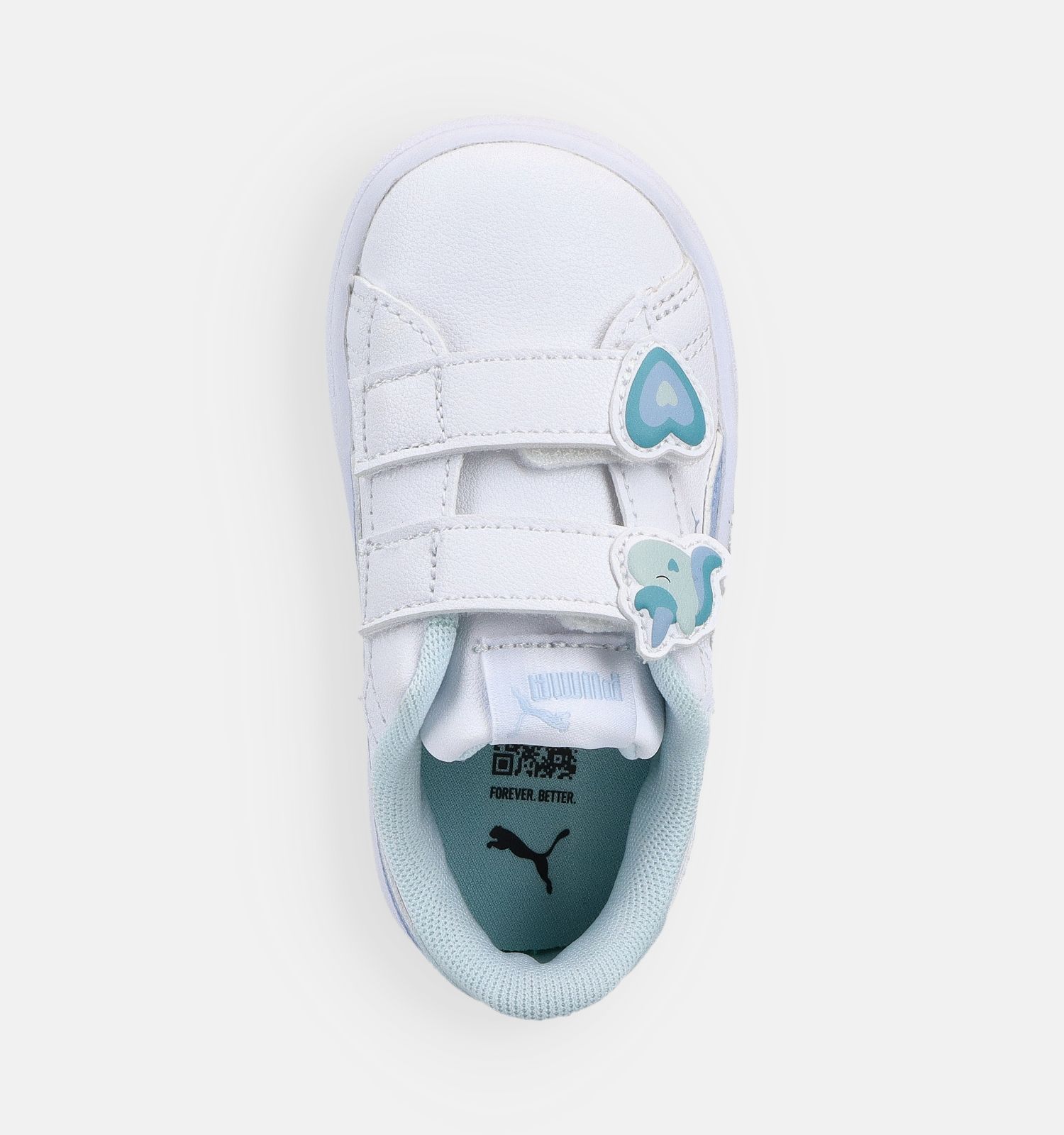 Ces baskets Puma ont une fermeture ferme velcro. Ces baskets en blanc pour filles restent bien en place pendant qu'ils marchent, courent, sautent et font du sport ! Les semelles semi-souples et résistantes à l'abrasion permettent également aux pieds de rouler facilement pendant la marche. C'est important pour la stabilité et l'équilibre, mais cela permet aussi aux filles de ne pas se fatiguer les pieds.