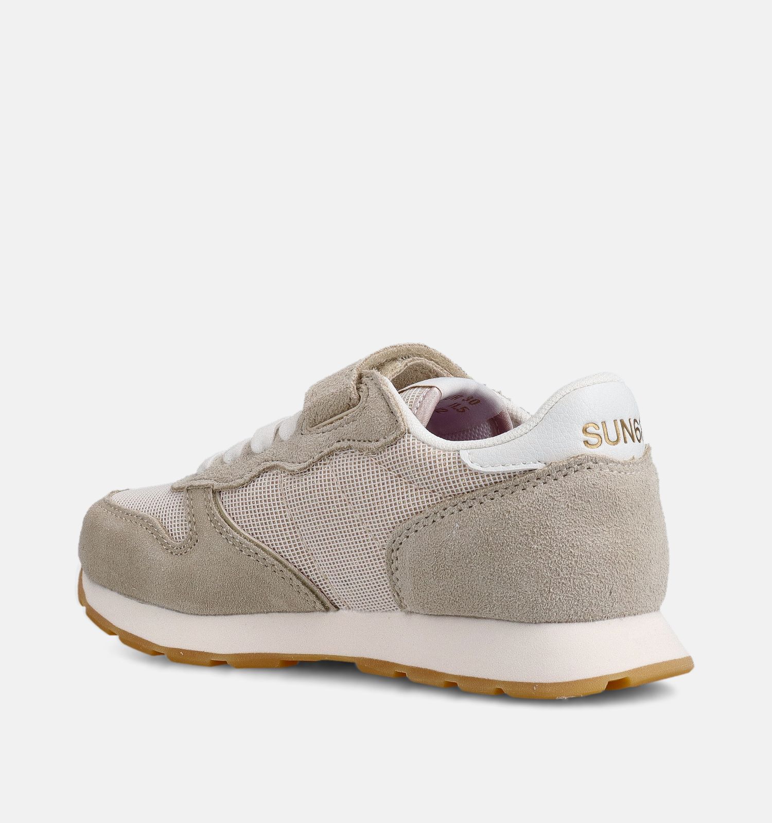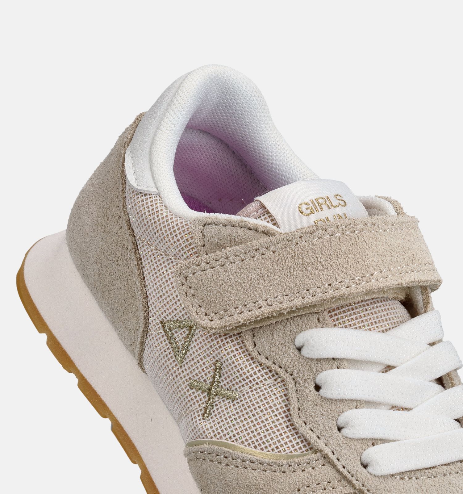 Ces baskets Sun68 ont une fermeture ferme élastique & velcro. Ces baskets en beige pour filles restent bien en place pendant qu'ils marchent, courent, sautent et font du sport ! Les semelles semi-souples et résistantes à l'abrasion permettent également aux pieds de rouler facilement pendant la marche. C'est important pour la stabilité et l'équilibre, mais cela permet aussi aux filles de ne pas se fatiguer les pieds.