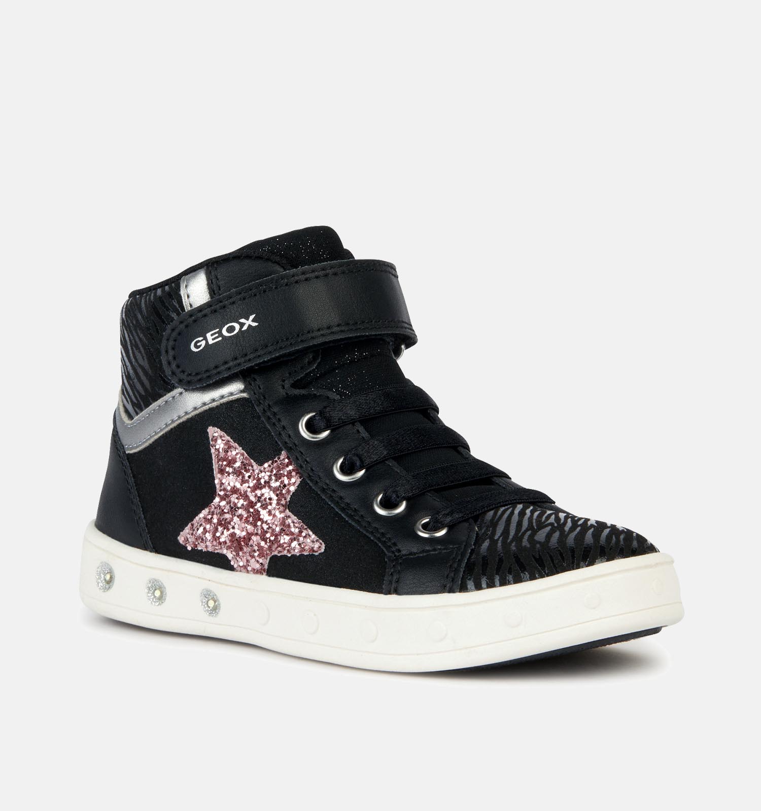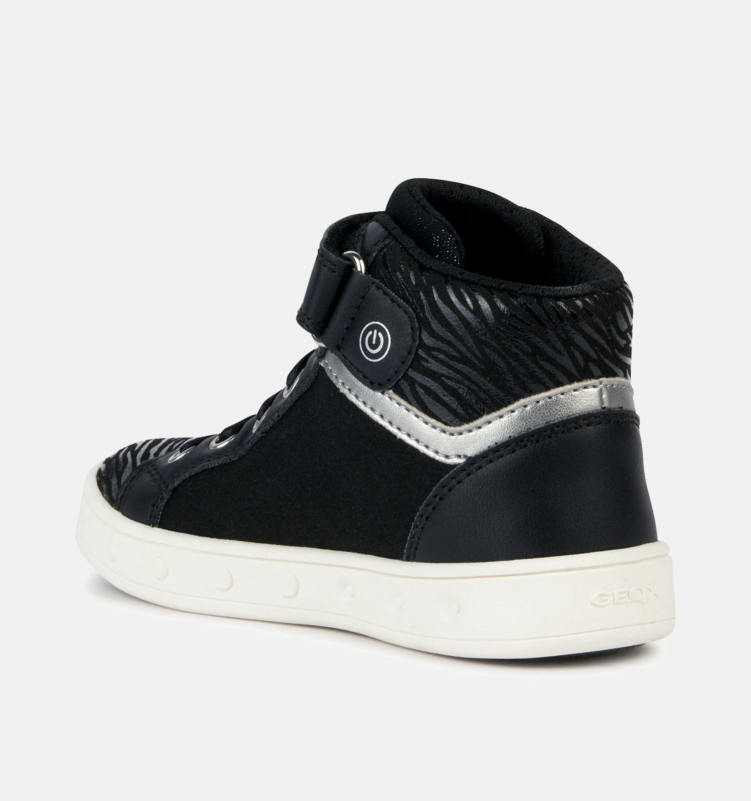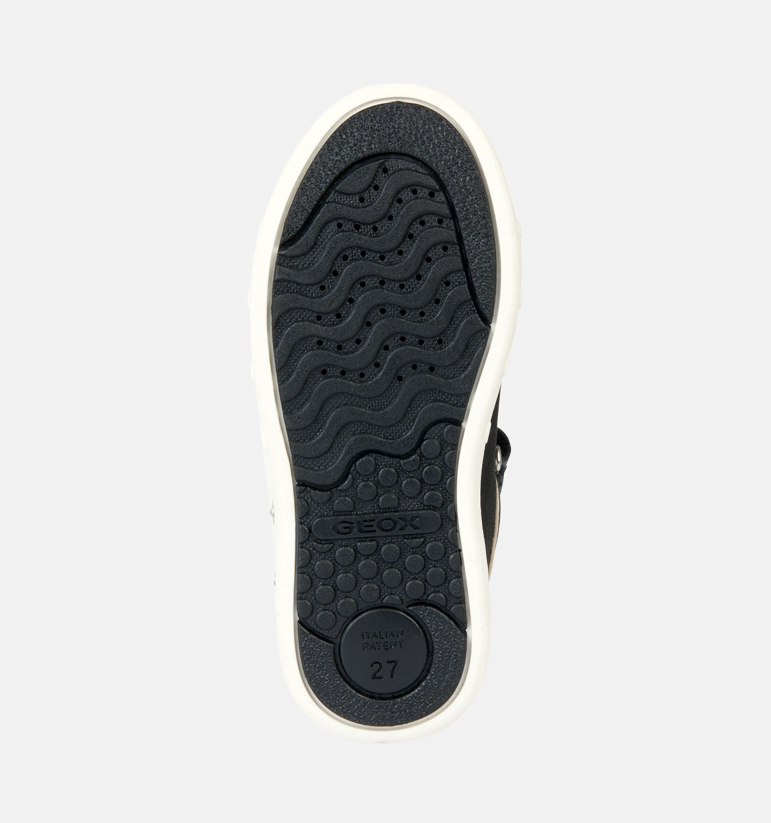 Ces baskets cool pour filles sont non seulement superbes, elles sont aussi très confortables ! Ces baskets en noir pour filles sont dotées de la semelle brevetée Geox, qui évacue la transpiration grâce à des micro-trous dans la semelle extérieure. Les pieds des enfants restent donc secs toute la journée, même lorsqu'ils courent, grimpent, jouent et sautent ! Avec le confort de ces baskets respirants pour enfants pour filles, aucune aventure n'est plus trop folle. Vous sentirez que le talon de ces baskets Geox est légèrement renforcé. Cela permet de maintenir les pieds à leur place et de réduire le risque qu'ils se retournent.