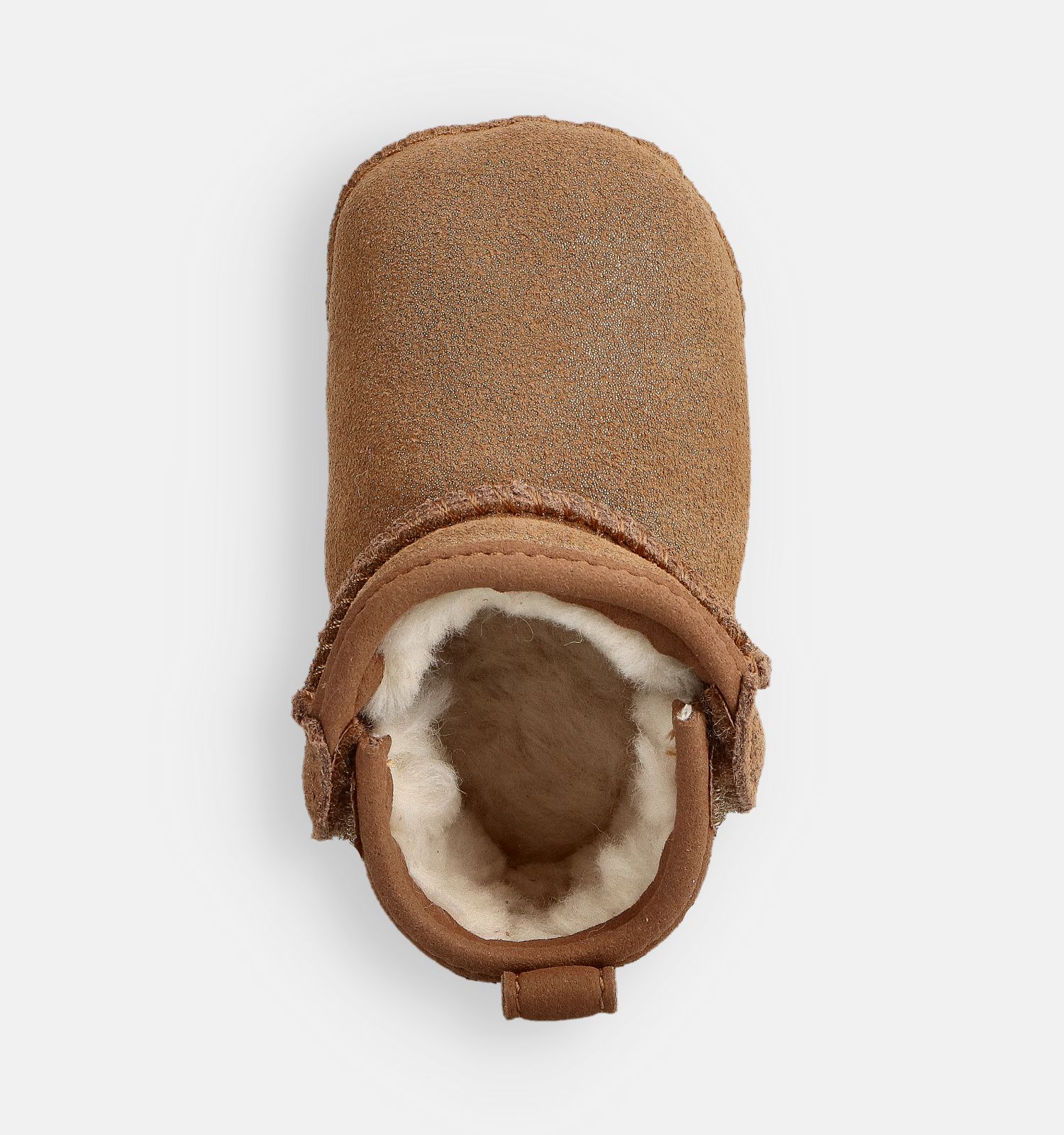 Pour marcher sur des nuages, découvrez ce chaussons bébé UGG ! Ces UGG pour filles sont confortables, thermorégulatrices et surtout : oh, si merveilleusement douces. Ces chaussons bébé UGG en cognac possèdent un intérieur en laine respirant et un extérieur en daim. Le relief des semelles assure une adhérence supplémentaire sur les surfaces (plus) glissantes.