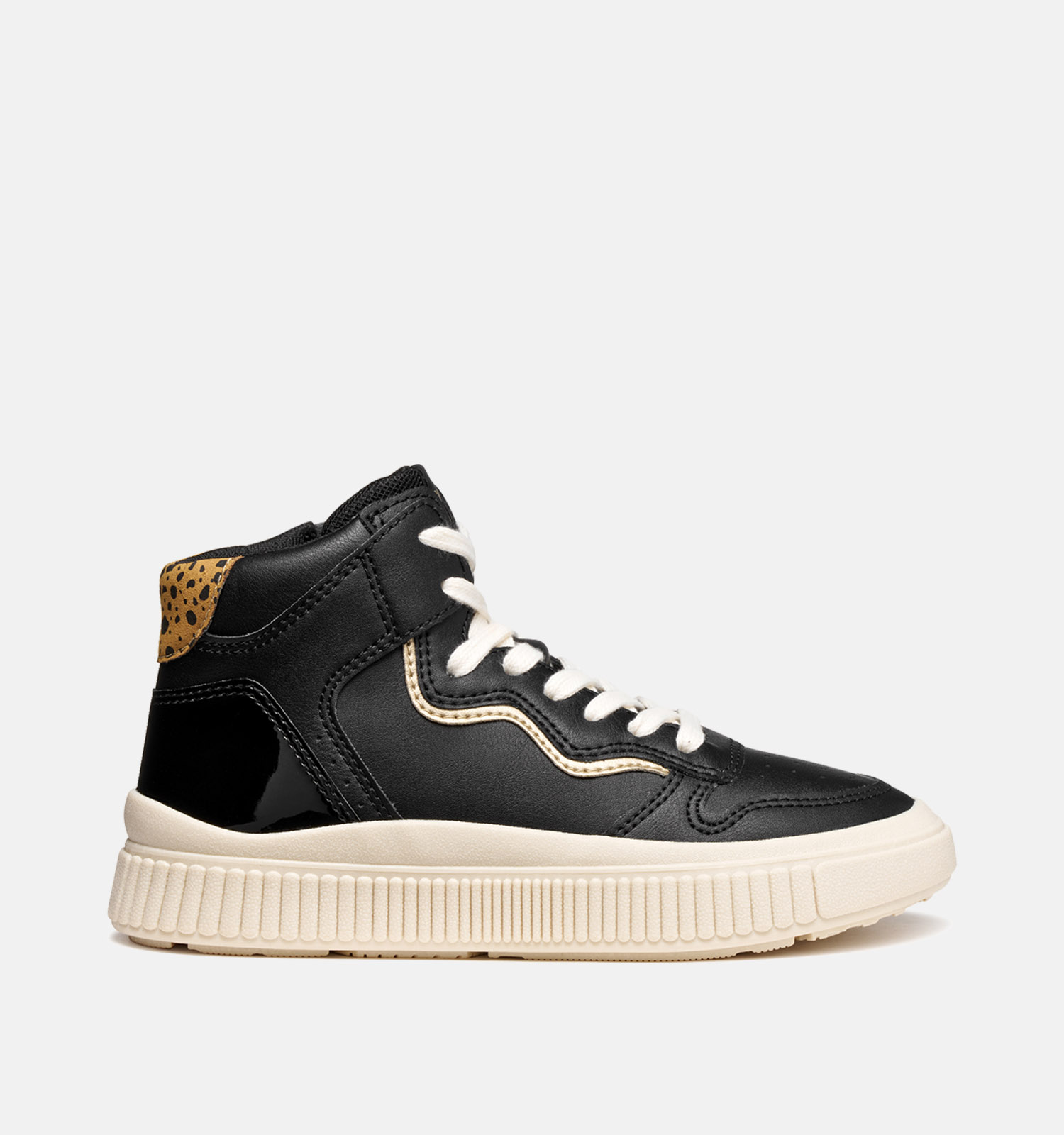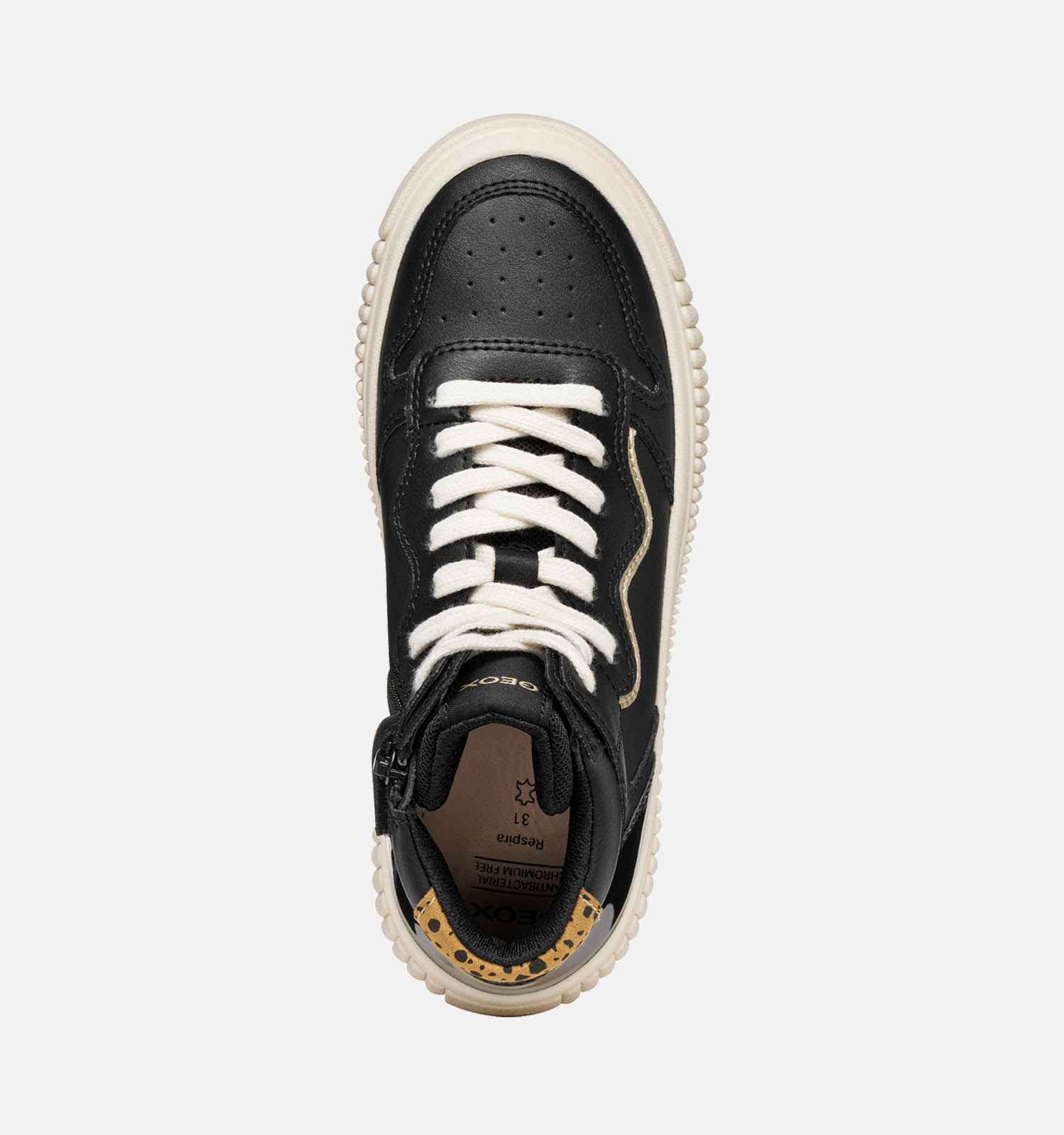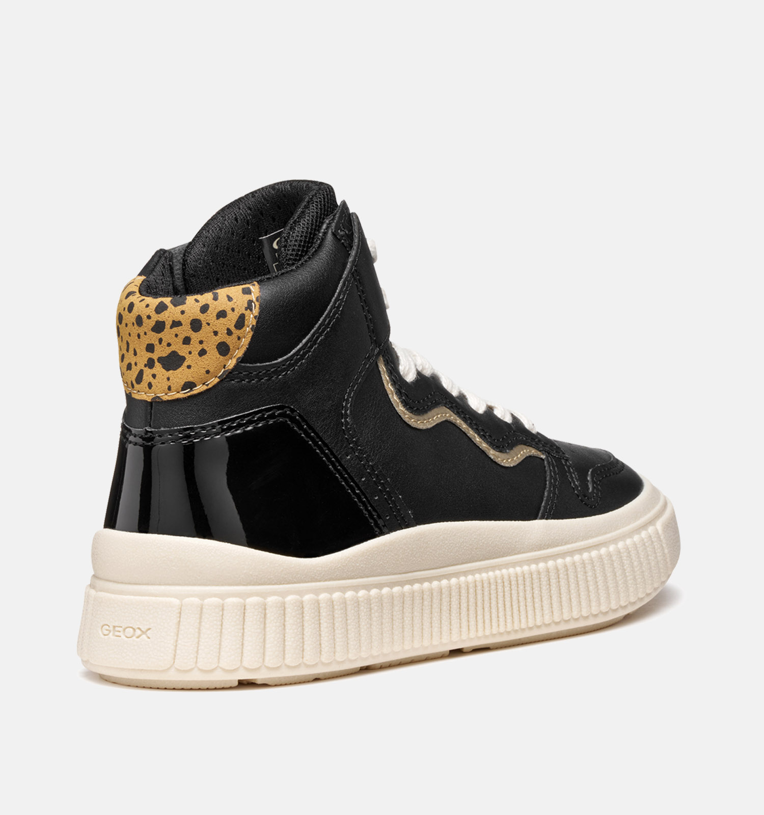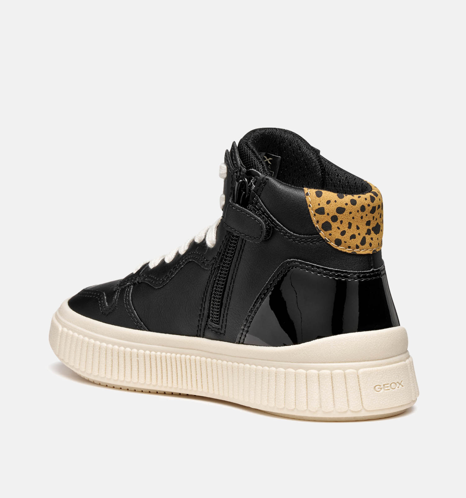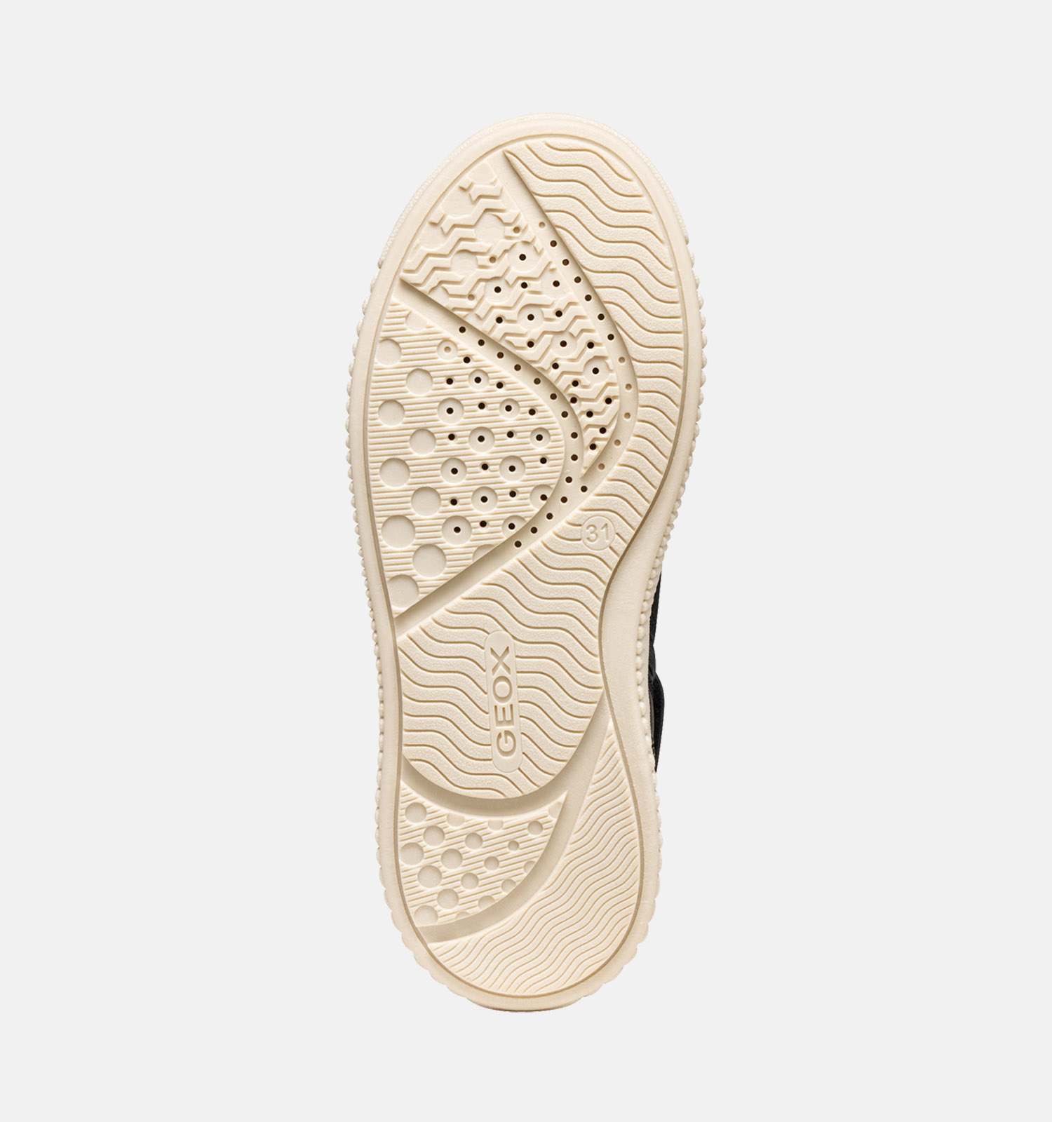 Ces chaussures hautes cool pour filles sont non seulement superbes, elles sont aussi très confortables ! Ces chaussures hautes en noir pour filles sont dotées de la semelle brevetée Geox, qui évacue la transpiration grâce à des micro-trous dans la semelle extérieure. Les pieds des enfants restent donc secs toute la journée, même lorsqu'ils courent, grimpent, jouent et sautent ! Avec le confort de ces chaussures hautes respirants pour enfants pour filles, aucune aventure n'est plus trop folle. Vous sentirez que le talon de ces chaussures hautes Geox est légèrement renforcé. Cela permet de maintenir les pieds à leur place et de réduire le risque qu'ils se retournent.