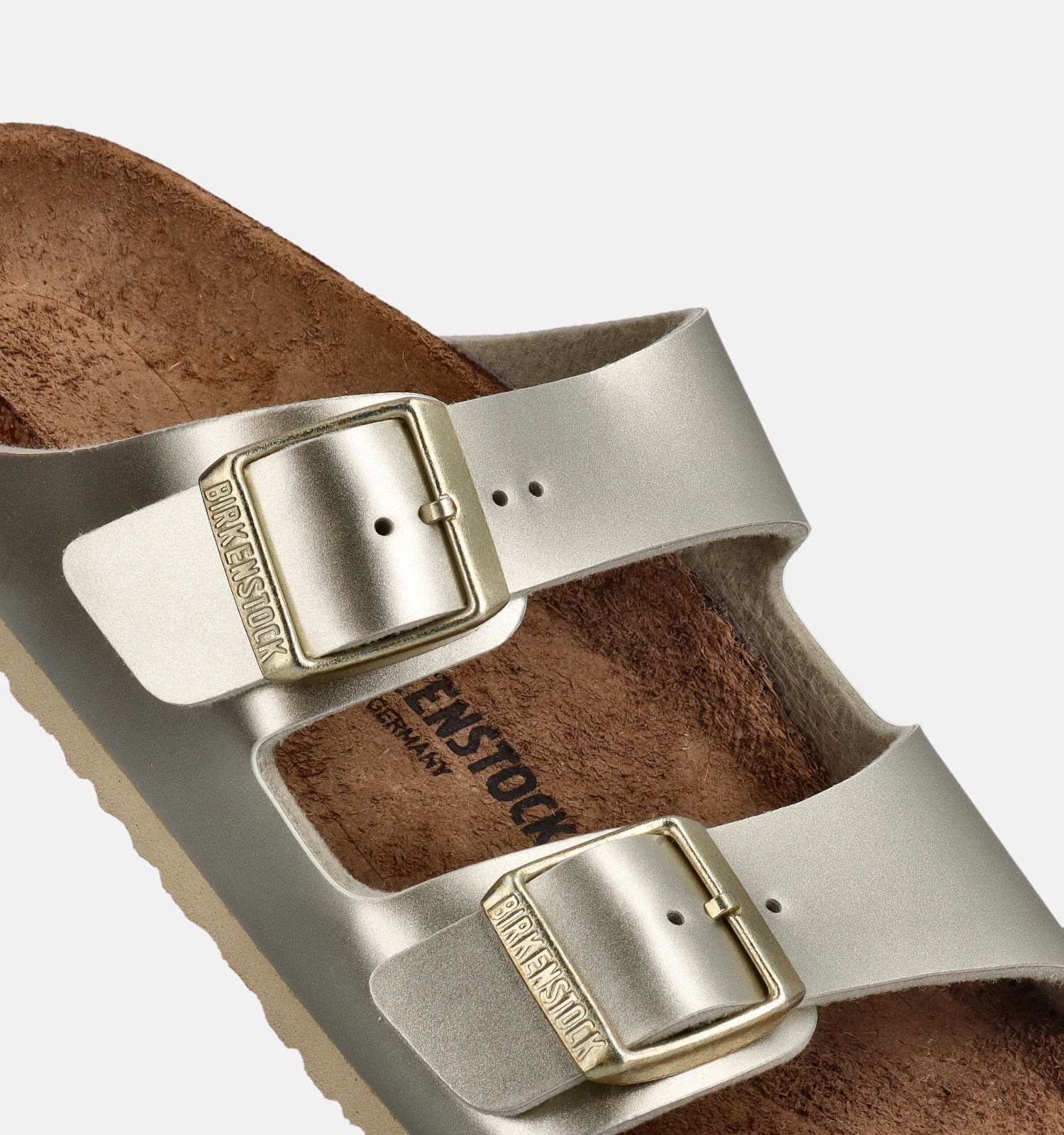 Cette marque de chaussures allemande se distingue de ses concurrentes par les caractéristiques inédites des premières de propreté, gages de confort : • Creux des talons plus profonds, pour un meilleur maintien. • Amortissement des chocs. • Absorption de la sueur, pour un climat du pied idéal, d'une grande importance pour nu-pieds. • Soutien de la voûte plantaire pour une position naturelle correcte de vos pieds et une posture optimale. Vous marchez sur des nuages (ou presque) ! Ce modèle Birkenstock Arizona de couleur or est un excellent achat pour chaque collection de chaussures pour filles.