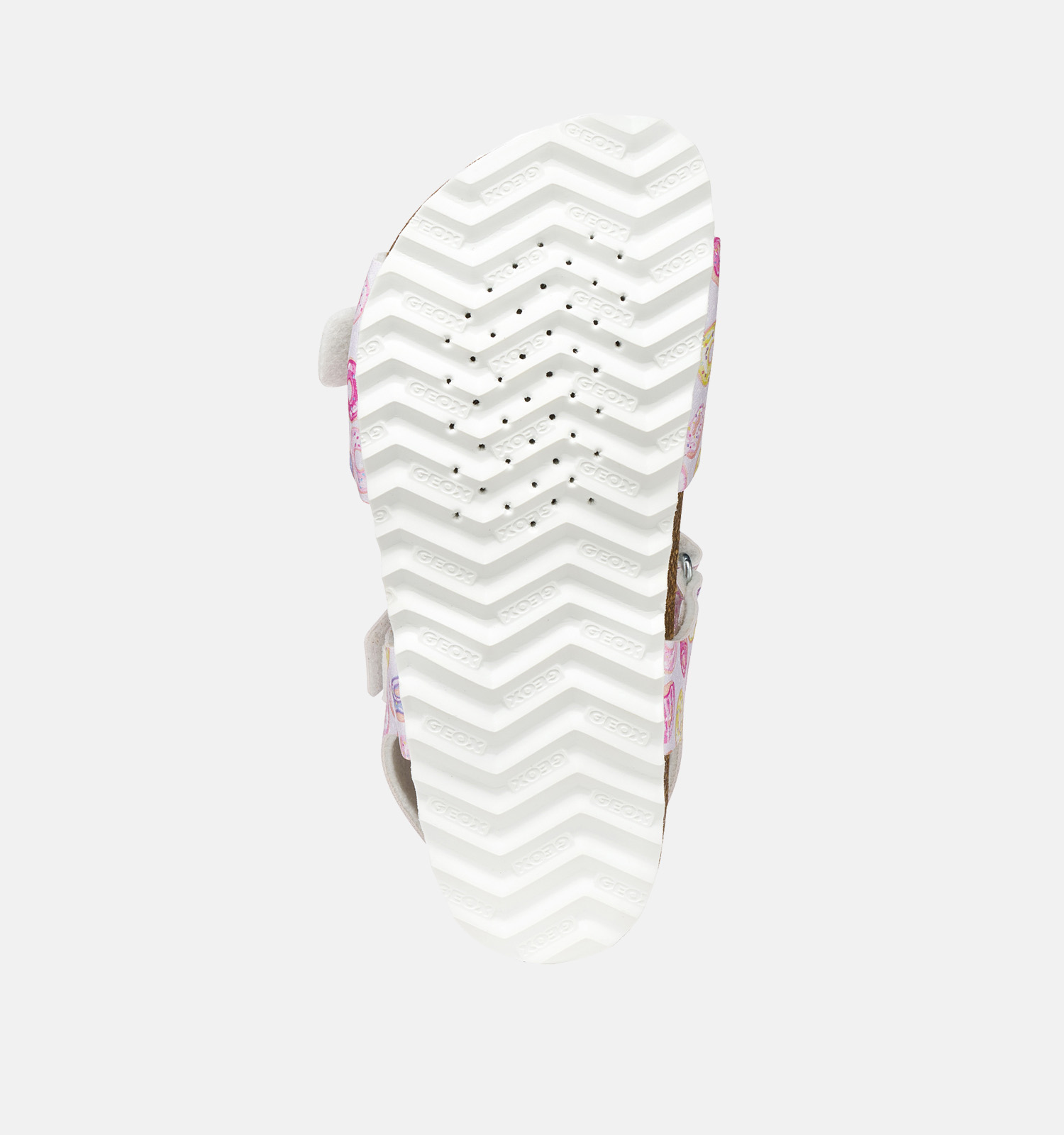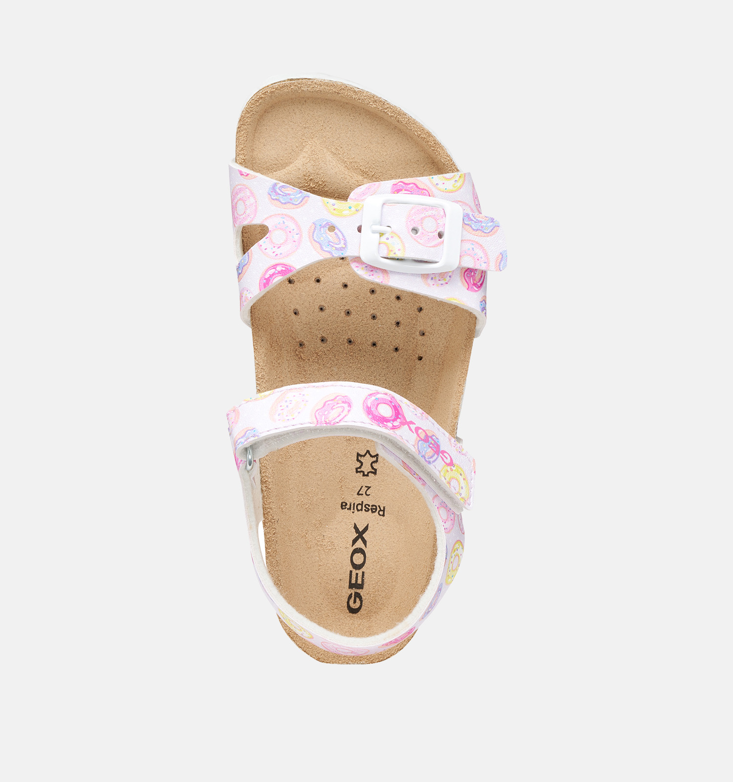Ces sandales cool pour filles sont non seulement superbes, elles sont aussi très confortables ! Ces sandales en blanc pour filles sont dotées de la semelle brevetée Geox, qui évacue la transpiration grâce à des micro-trous dans la semelle extérieure. Les pieds des enfants restent donc secs toute la journée, même lorsqu'ils courent, grimpent, jouent et sautent ! Avec le confort de ces sandales respirants pour enfants pour filles, aucune aventure n'est plus trop folle. Vous sentirez que le talon de ces sandales Geox est légèrement renforcé. Cela permet de maintenir les pieds à leur place et de réduire le risque qu'ils se retournent.