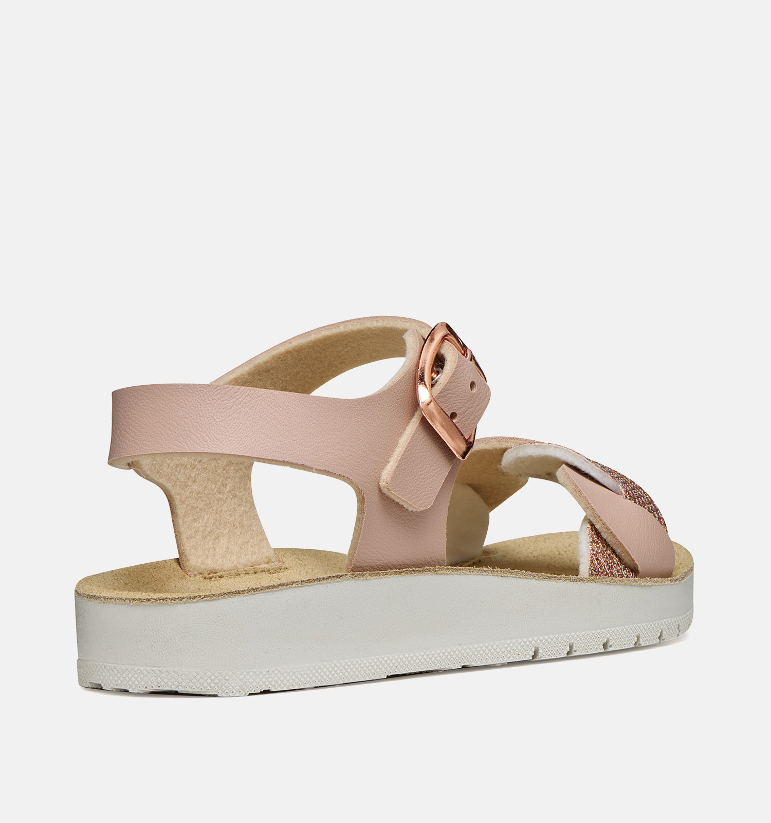 Ces sandales cool pour filles sont non seulement superbes, elles sont aussi très confortables ! Ces sandales en rose pour filles sont dotées de la semelle brevetée Geox, qui évacue la transpiration grâce à des micro-trous dans la semelle extérieure. Les pieds des enfants restent donc secs toute la journée, même lorsqu'ils courent, grimpent, jouent et sautent ! Avec le confort de ces sandales respirants pour enfants pour filles, aucune aventure n'est plus trop folle. Vous sentirez que le talon de ces sandales Geox est légèrement renforcé. Cela permet de maintenir les pieds à leur place et de réduire le risque qu'ils se retournent.