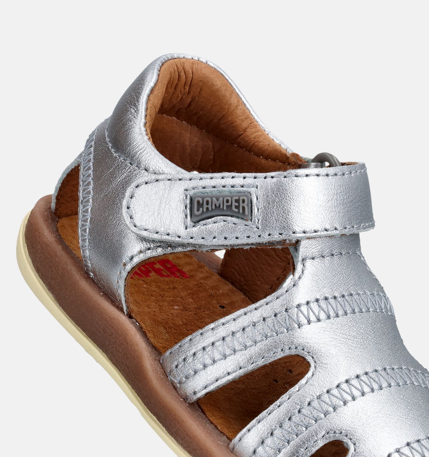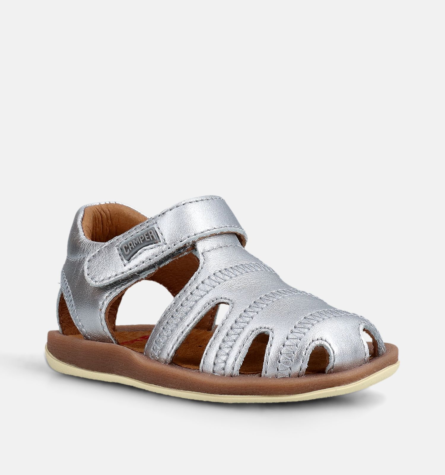 Ces sandales en argent pour bébés et bambins sont fabriquées en cuir léger et de haute qualité. Le poids ultra-léger de ces sandales pour bébés permet aux plus petites filles de se déplacer facilement et librement. La fermeture velcro maintient ces sandales Camper bien en place aux pieds des enfants.