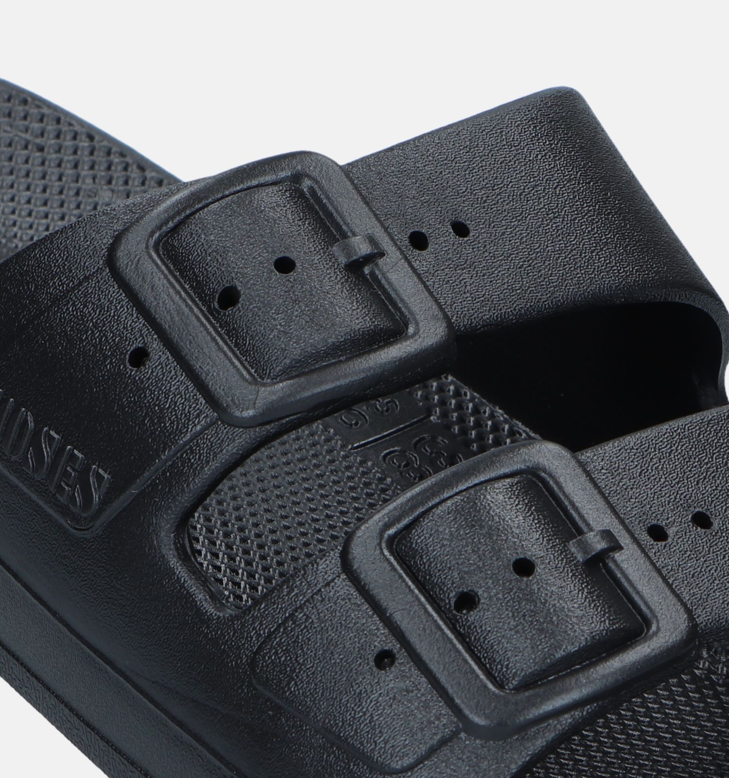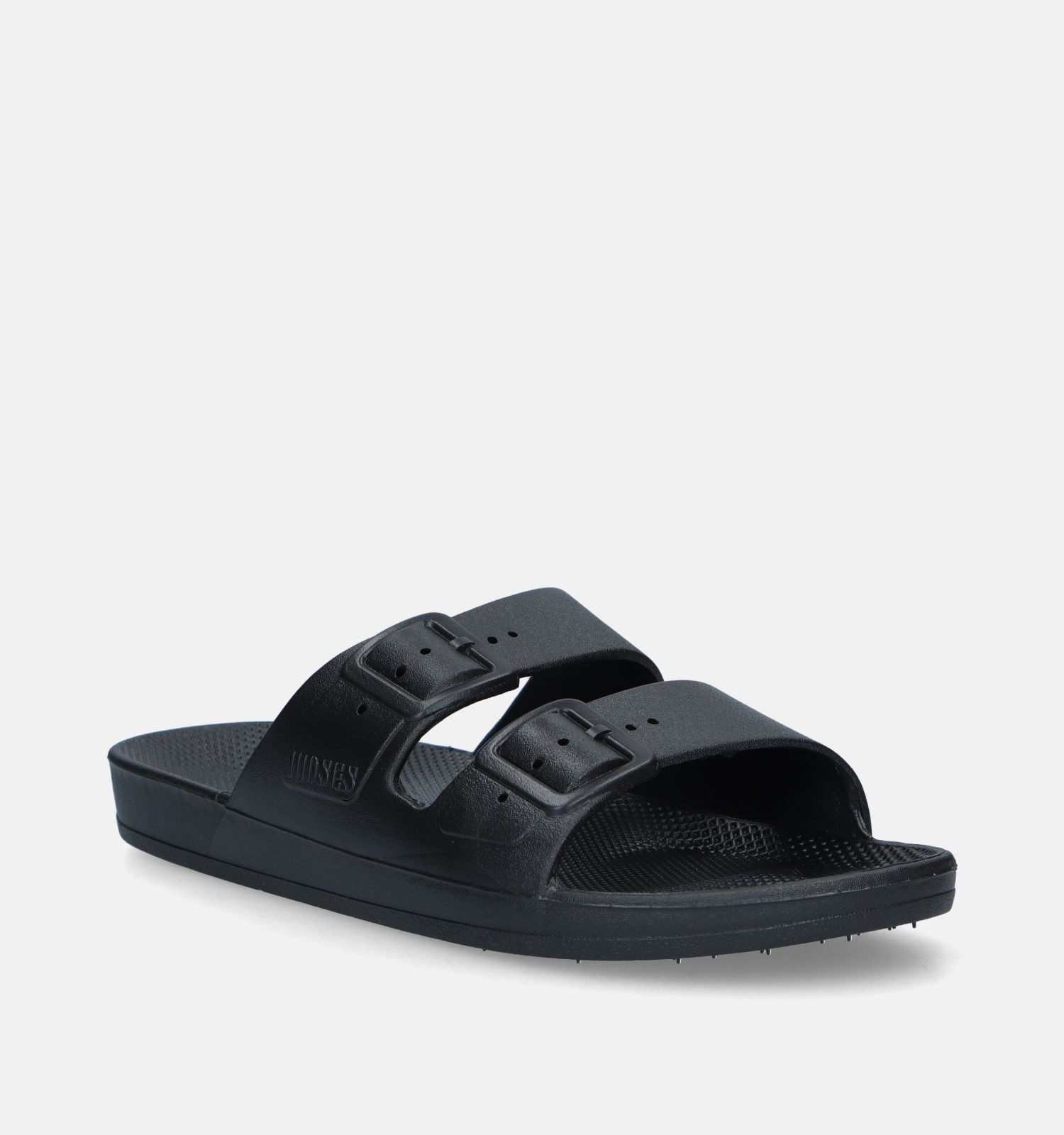 Ces claquettes noir pour femmes ont des semelles en plastique. Elles sont donc très faciles d'entretien et hygiéniques. Ces nu-pieds de Freedom Moses sont faciles à nettoyer à l'eau et au savon doux. Bon à savoir également : ce modèle femmes en noir sèche rapidement.