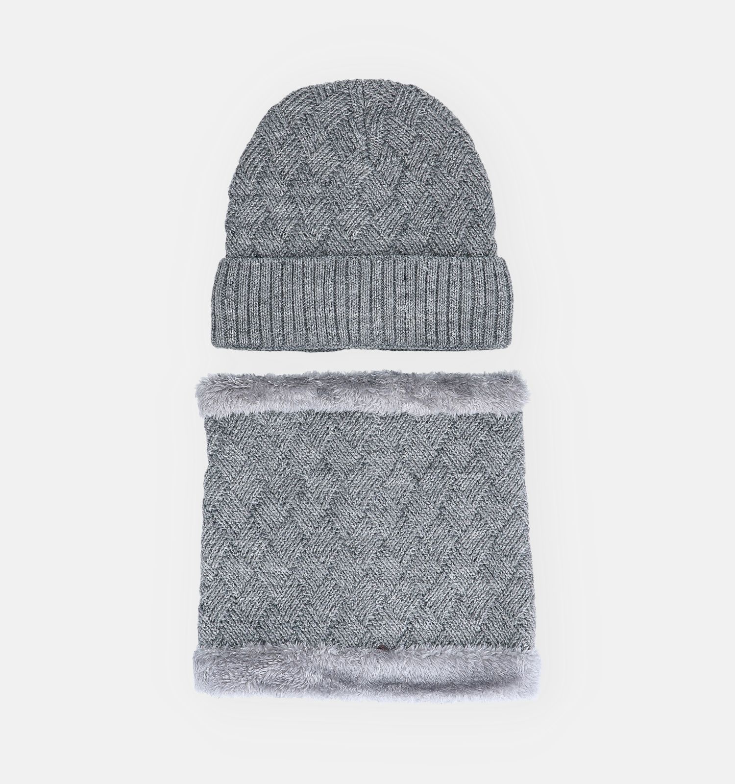 Via Limone Bonnet et Col Gris en tricot torsadé (Ensemble)