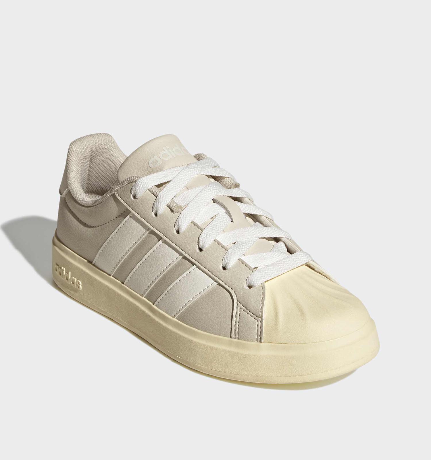 Bon à savoir pour l'entretien : le matériau extérieur de ces baskets en gris est solide simili cuir. À l'intérieur, ces chaussures adidas sont finies avec des matériaux plus doux textile et textile.