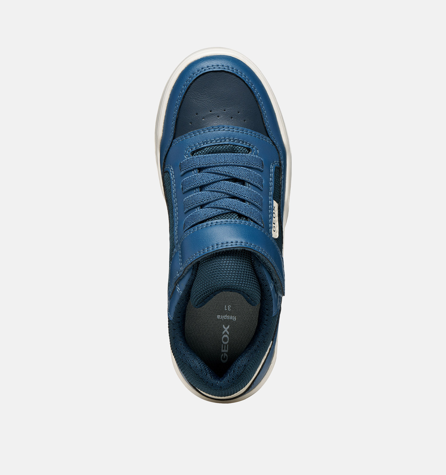 Ces baskets cool pour garçons sont non seulement superbes, elles sont aussi très confortables ! Ces baskets en bleu pour garçons sont dotées de la semelle brevetée Geox, qui évacue la transpiration grâce à des micro-trous dans la semelle extérieure. Les pieds des enfants restent donc secs toute la journée, même lorsqu'ils courent, grimpent, jouent et sautent ! Avec le confort de ces baskets respirants pour enfants pour garçons, aucune aventure n'est plus trop folle. Vous sentirez que le talon de ces baskets Geox est légèrement renforcé. Cela permet de maintenir les pieds à leur place et de réduire le risque qu'ils se retournent.