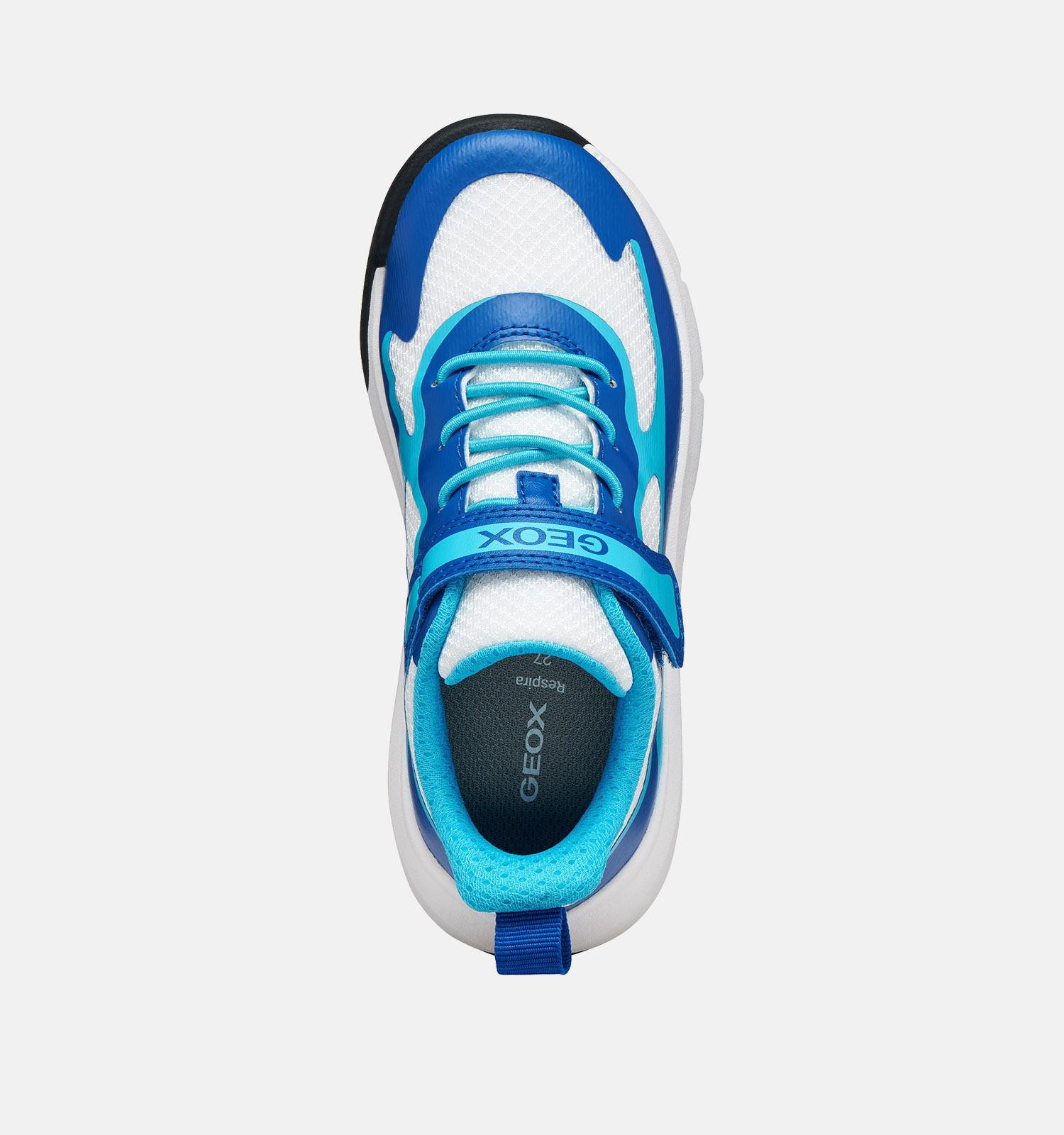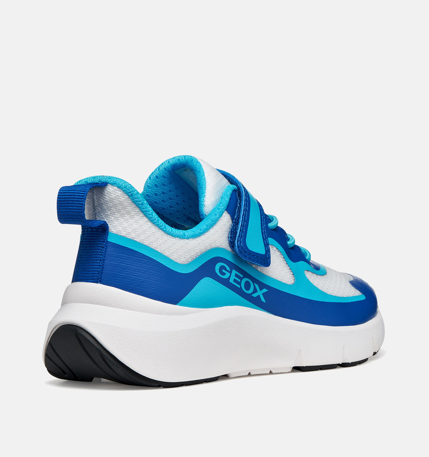 Ces baskets cool pour garçons sont non seulement superbes, elles sont aussi très confortables ! Ces baskets en bleu pour garçons sont dotées de la semelle brevetée Geox, qui évacue la transpiration grâce à des micro-trous dans la semelle extérieure. Les pieds des enfants restent donc secs toute la journée, même lorsqu'ils courent, grimpent, jouent et sautent ! Avec le confort de ces baskets respirants pour enfants pour garçons, aucune aventure n'est plus trop folle. Vous sentirez que le talon de ces baskets Geox est légèrement renforcé. Cela permet de maintenir les pieds à leur place et de réduire le risque qu'ils se retournent.
