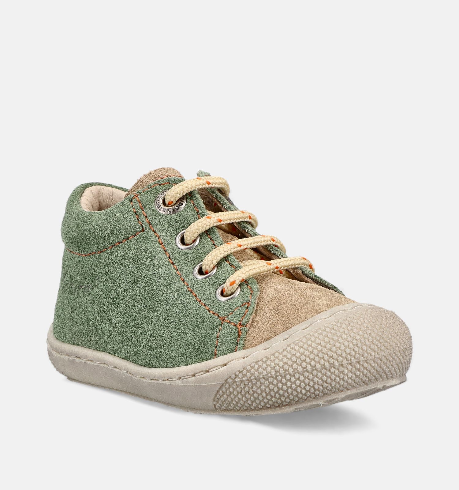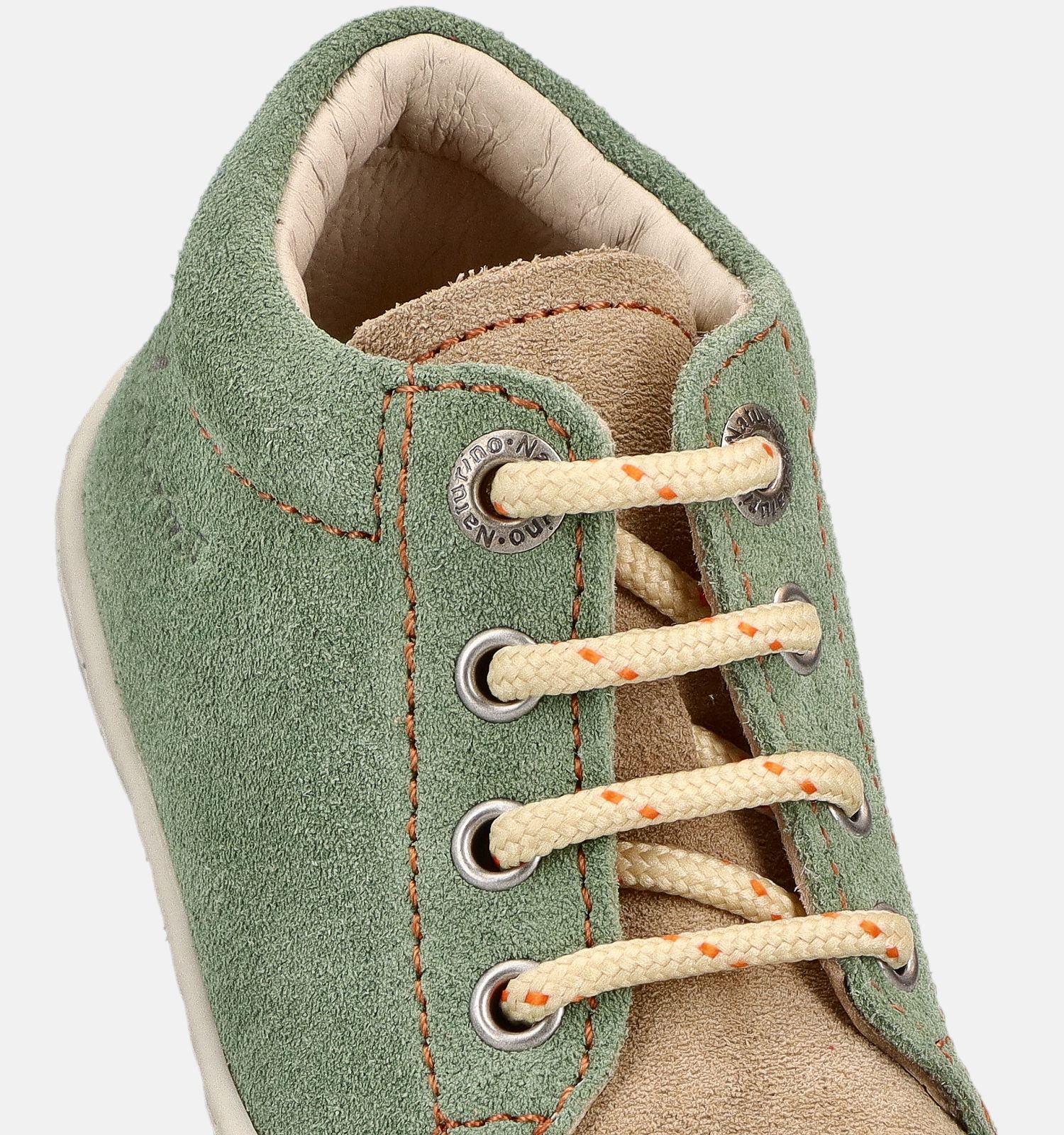 Bon à savoir pour l'entretien : le matériau extérieur de ces baskets en vert est solide daim. À l'intérieur, ces chaussures Naturino sont finies avec des matériaux plus doux cuir et cuir.