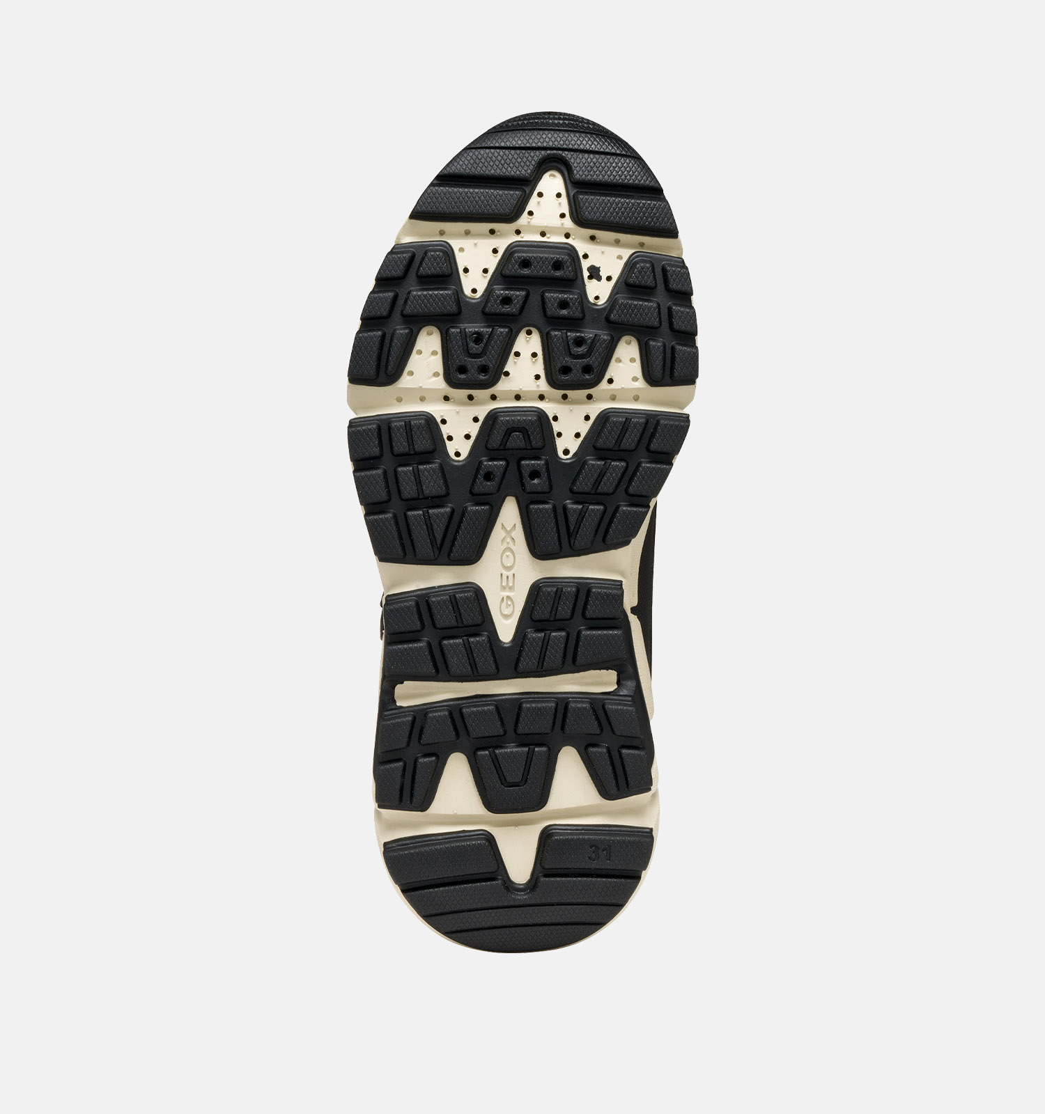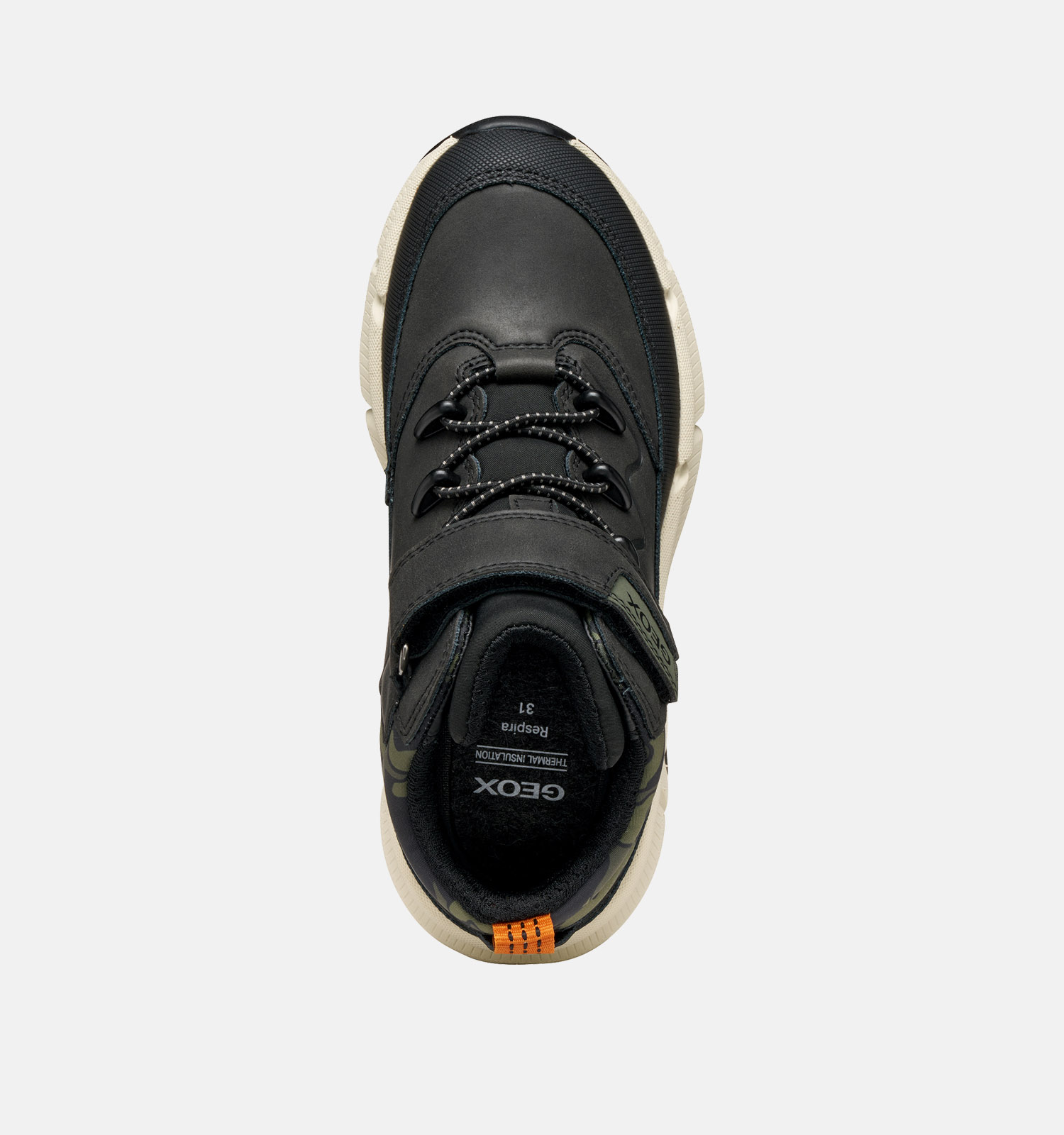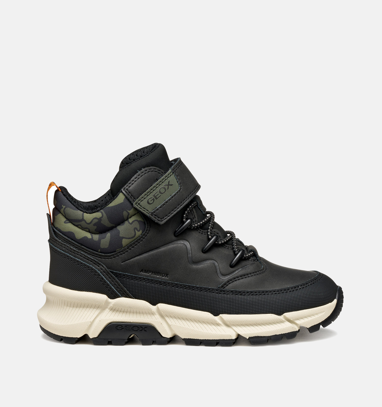Ces chaussures hautes cool pour garçons sont non seulement superbes, elles sont aussi très confortables ! Ces chaussures hautes en noir pour garçons sont dotées de la semelle brevetée Geox, qui évacue la transpiration grâce à des micro-trous dans la semelle extérieure. Les pieds des enfants restent donc secs toute la journée, même lorsqu'ils courent, grimpent, jouent et sautent ! Avec le confort de ces chaussures hautes respirants pour enfants pour garçons, aucune aventure n'est plus trop folle. Vous sentirez que le talon de ces chaussures hautes Geox est légèrement renforcé. Cela permet de maintenir les pieds à leur place et de réduire le risque qu'ils se retournent.