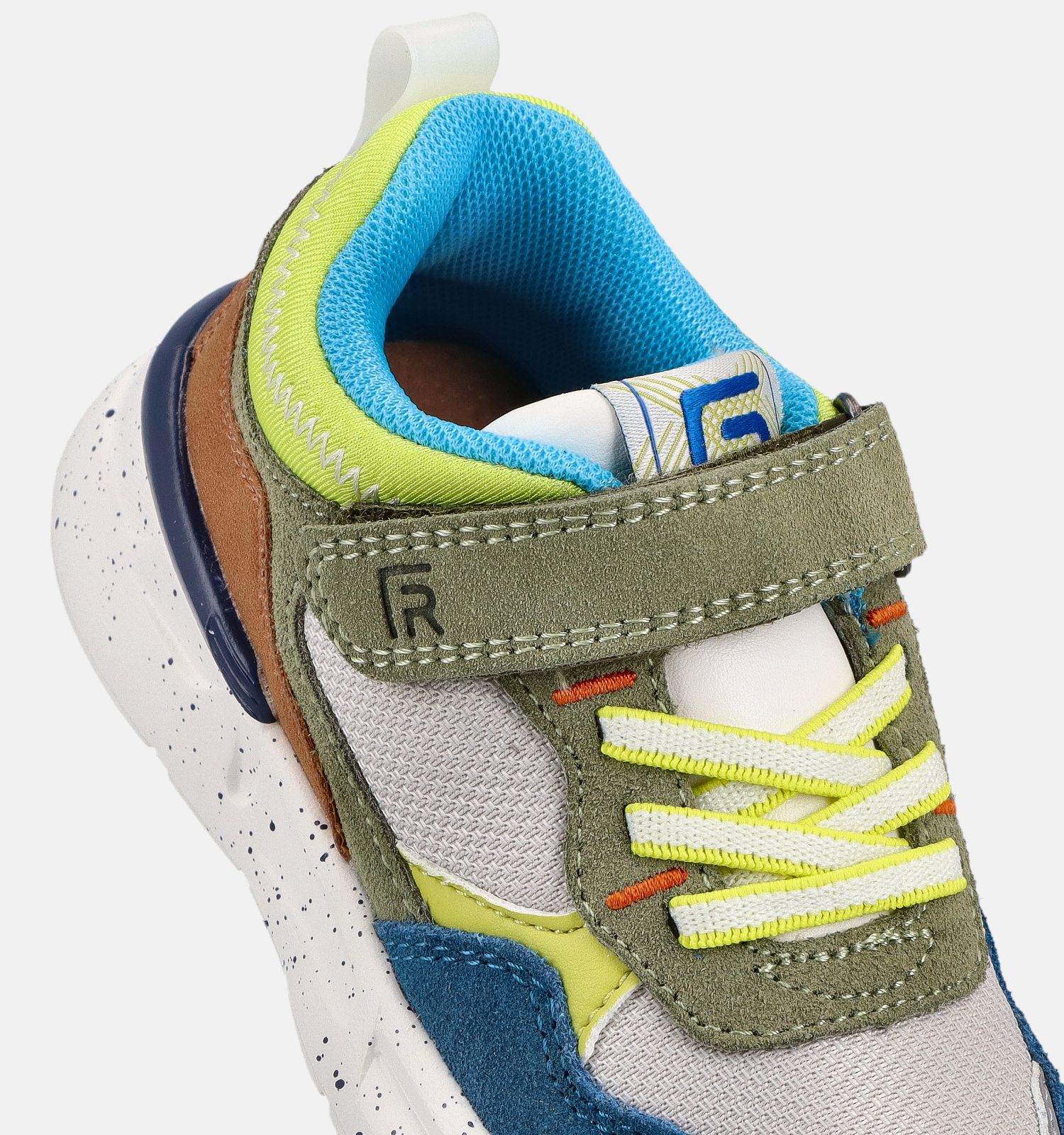 Ces baskets FR by Romagnoli ont une fermeture ferme élastique & velcro. Ces baskets en vert pour garçons restent bien en place pendant qu'ils marchent, courent, sautent et font du sport ! Les semelles semi-souples et résistantes à l'abrasion permettent également aux pieds de rouler facilement pendant la marche. C'est important pour la stabilité et l'équilibre, mais cela permet aussi aux garçons de ne pas se fatiguer les pieds.