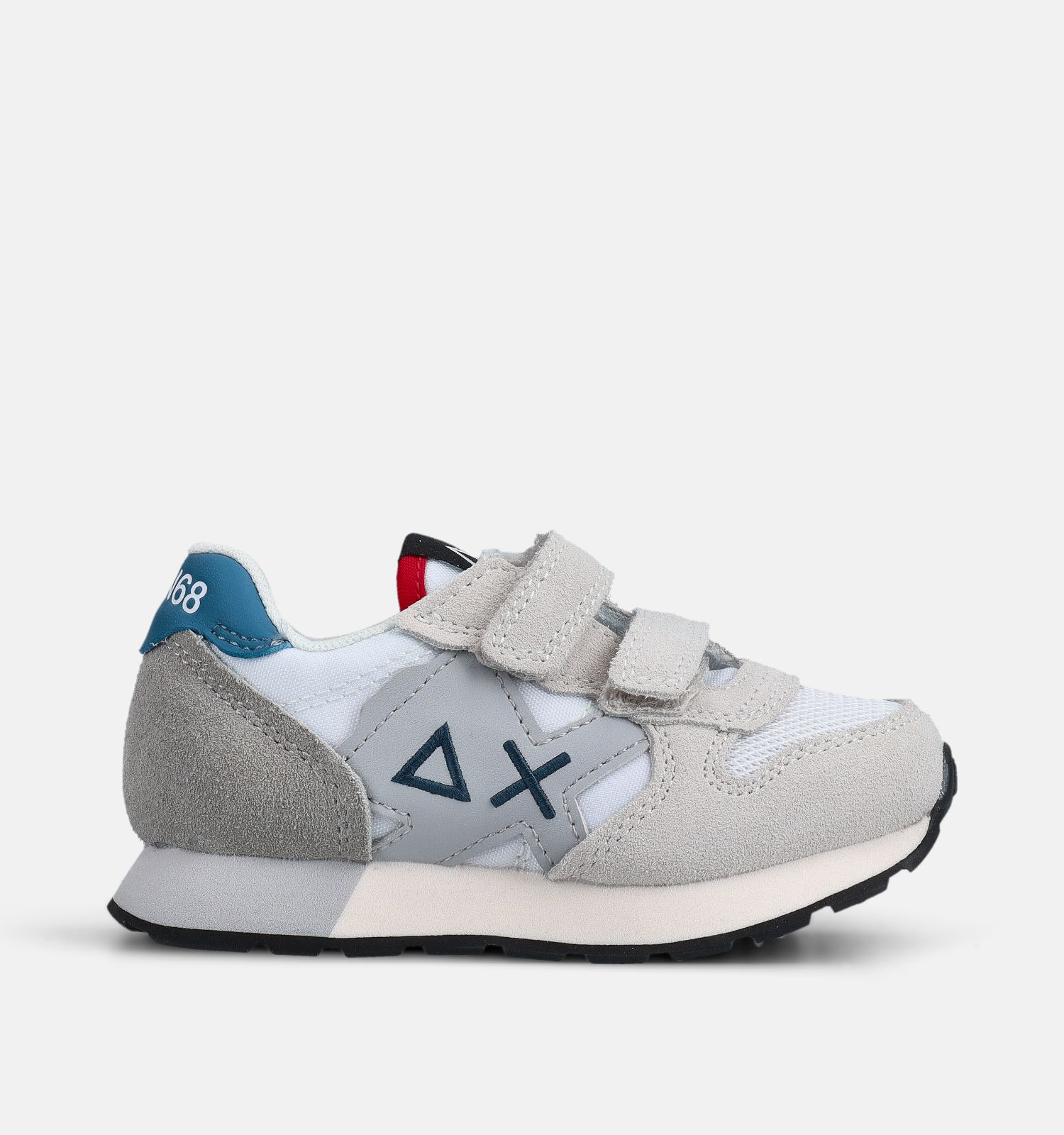 Ces baskets Sun68 ont une fermeture ferme velcro. Ces baskets en blanc pour garçons restent bien en place pendant qu'ils marchent, courent, sautent et font du sport ! Les semelles semi-souples et résistantes à l'abrasion permettent également aux pieds de rouler facilement pendant la marche. C'est important pour la stabilité et l'équilibre, mais cela permet aussi aux garçons de ne pas se fatiguer les pieds.