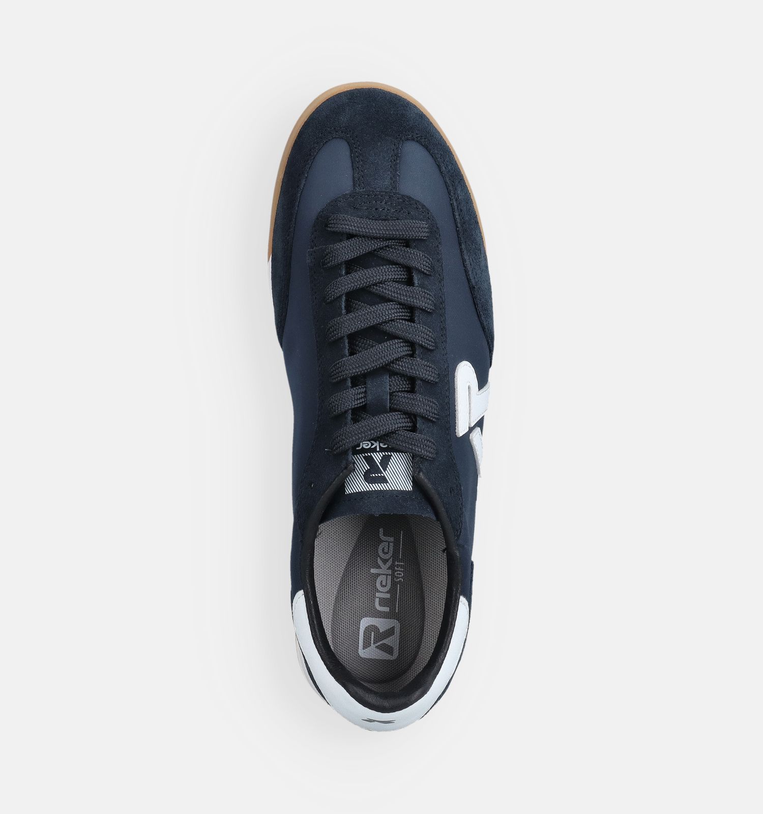 Ces baskets pour hommes est fabriqué en daim, textile ultrarobuste et son intérieur se compose de textile confortable. Ces matériaux de qualité sont particulièrement légers, un antidote à la sensation reconnaissable de pieds lourds après un certain temps. Ces baskets Rieker en bleu pour hommes possède une fermeture lacets.