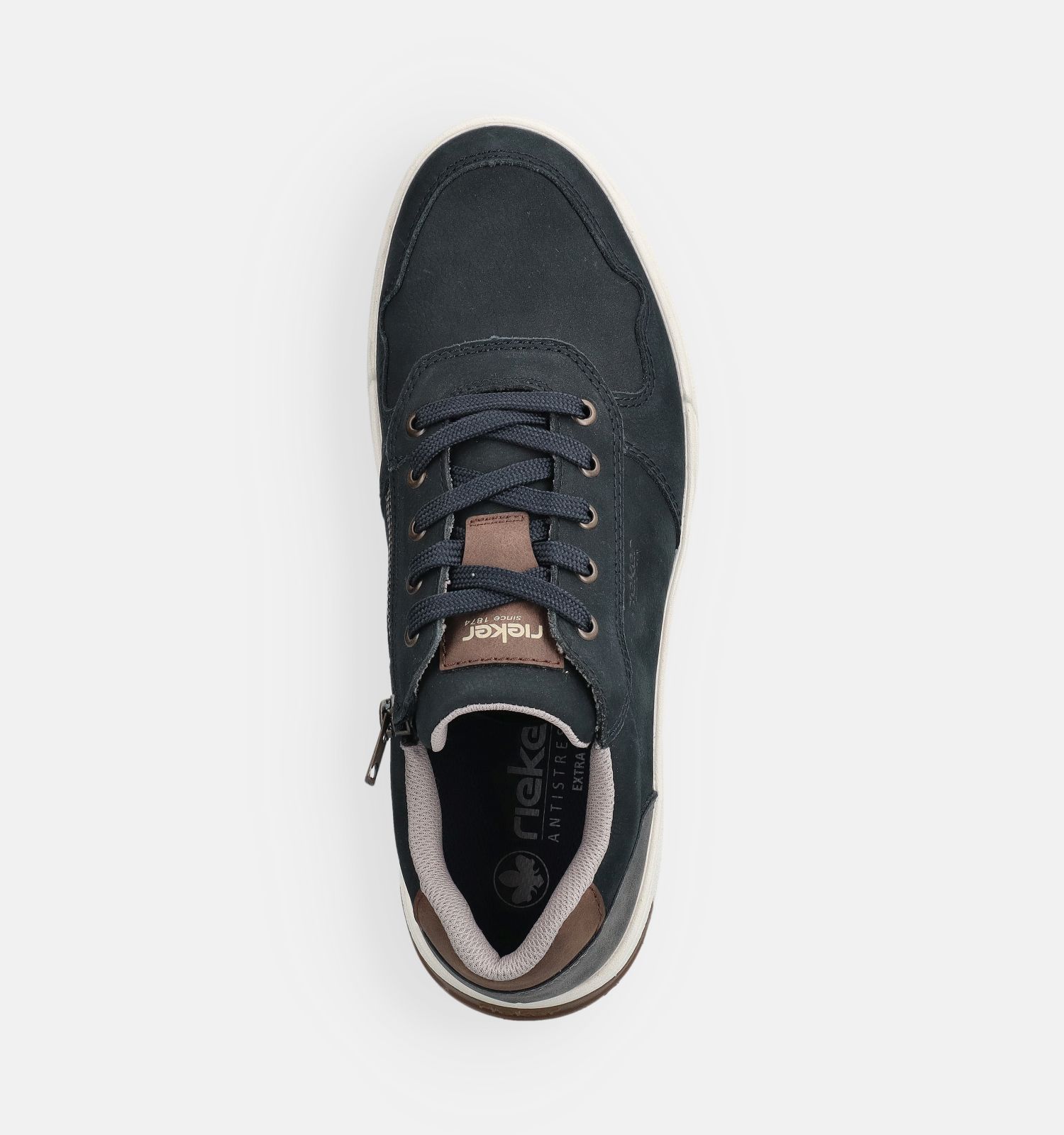 Ces baskets pour hommes est fabriqué en cuir ultrarobuste et son intérieur se compose de textile confortable. Ces matériaux de qualité sont particulièrement légers, un antidote à la sensation reconnaissable de pieds lourds après un certain temps. Ces baskets Rieker en bleu pour hommes possède une fermeture lacets.