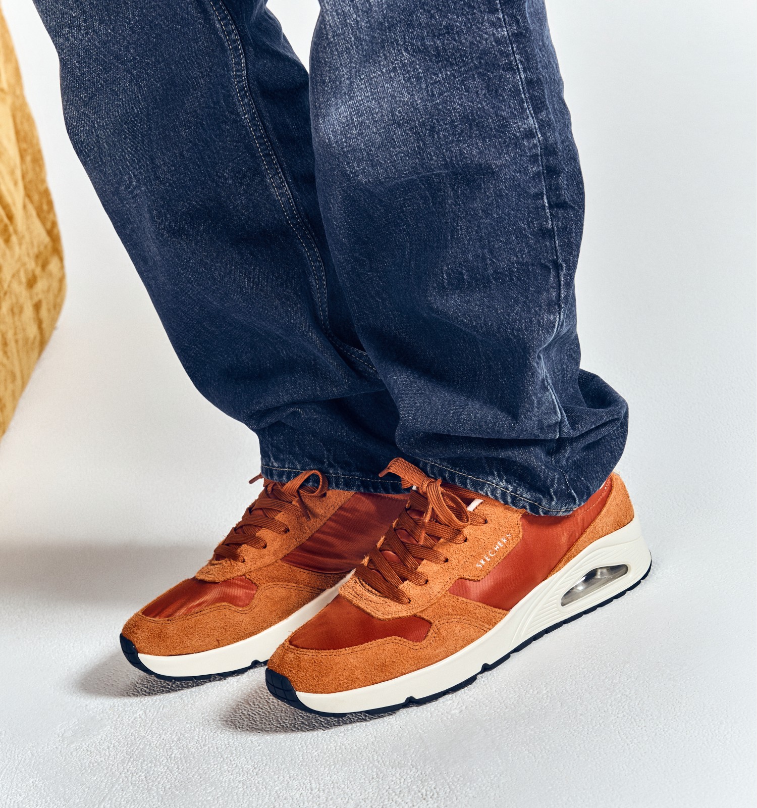 Le design moderne de ces baskets Skechers en orange pour hommes est un bel atout. Cependant, ces chaussures frappent surtout par leur confort. La marque Skechers est mondialement connue pour son confort révolutionnaire et ses coupes parfaites. Vous le remarquerez aussi tout de suite en chaussant ces Skechers . Fort de ses propriétés antichocs, ces baskets pour hommes se révèle idéal pour des pieds fatigués, voire douloureux. Les semelles semi-flexibles de ce modèle en orange, qui bougent lors des mouvements, atténuent également les chocs. Bon à savoir pour l'entretien : l'intérieur de ces Skechers en orange est fabriqué en textile souple. Le matériau extérieur ultrarobuste est fabriqué en daim.