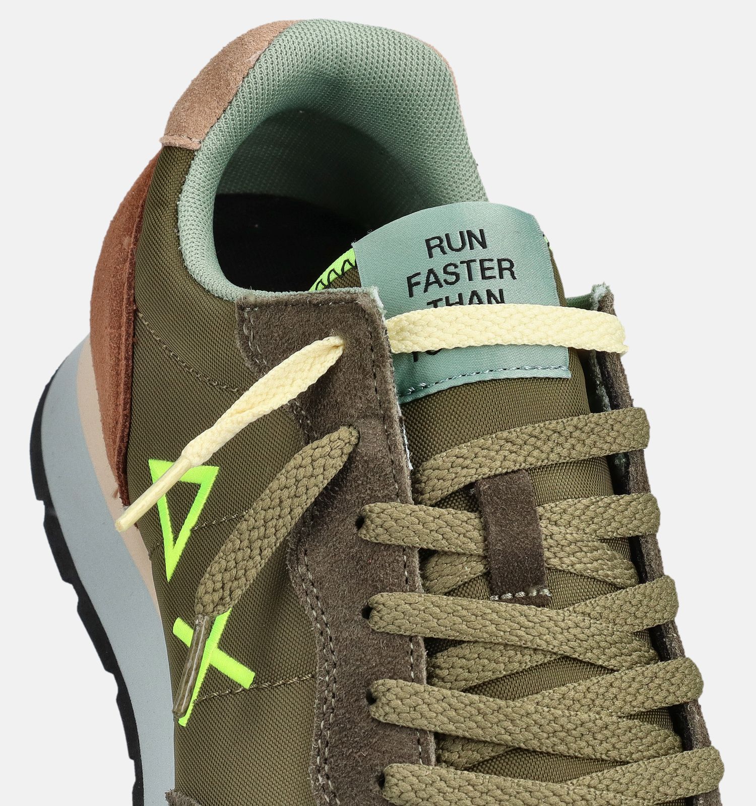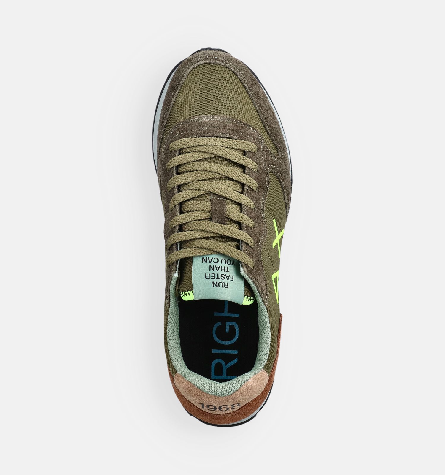 En termes de confort, ces baskets en vert pour homme obtiennent un score élevé. Les semelles semi-flexibles et résistantes permettent aux pieds de rouler agréablement pendant la marche. Cela augmente considérablement le confort de la marche. La coupe de ces baskets Sun68 convient parfaitement aux pieds des hommes : il y a beaucoup d'espace pour les orteils, la voûte plantaire est bien soutenue et la section renforcée du talon offre une stabilité supplémentaire. La largeur de chaussure de ce modèle en vert avec fermeture lacets est F - Semelle normale.