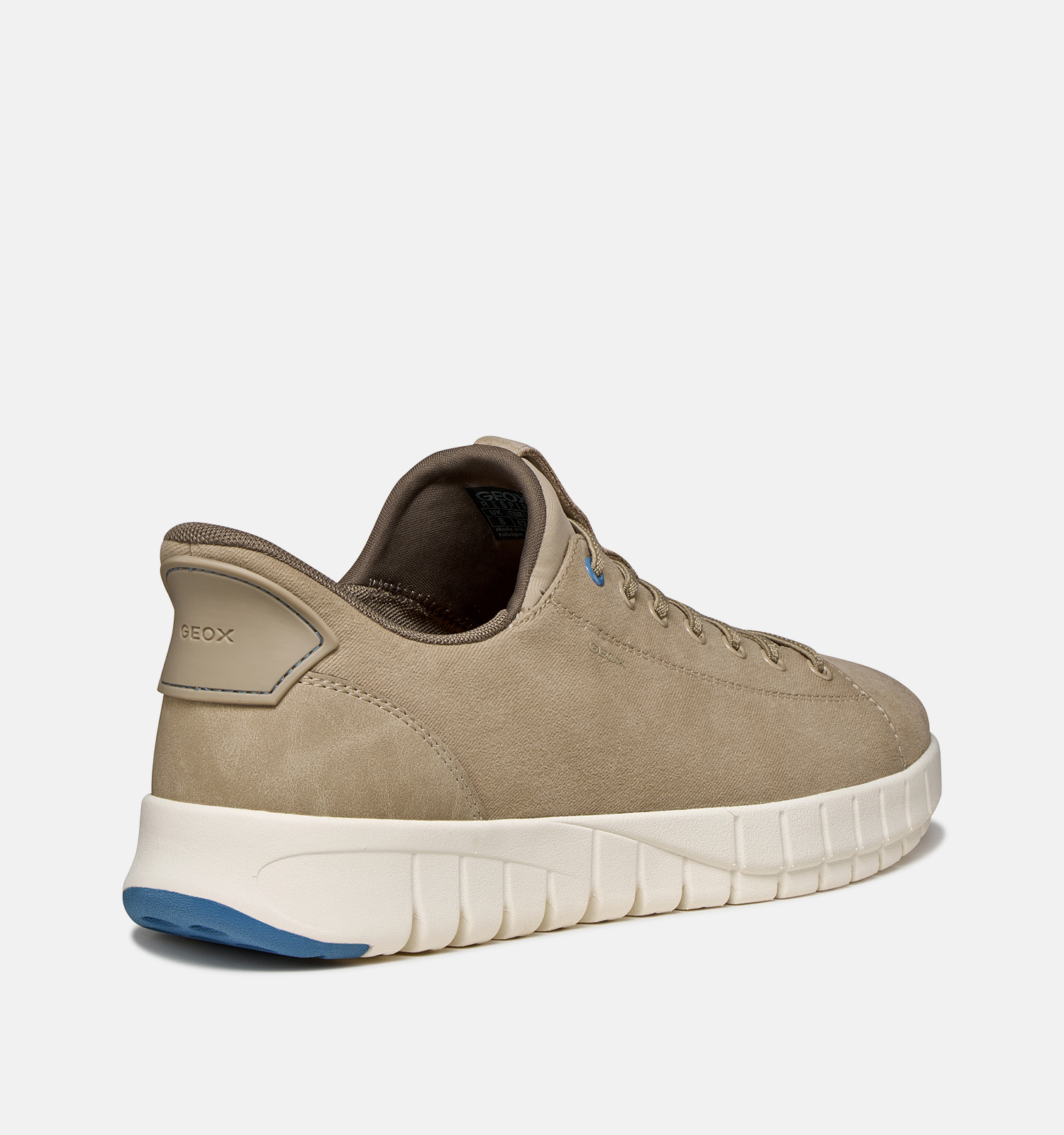 Ces baskets en beige de Geox ont un intérieur doux en textile. La matière extérieure extra résistante est fabriquée en textile. Il est important de noter que ces baskets Geox pour homme s'adaptent normalement. Choisissez donc la taille de chaussure que vous avez habituellement !