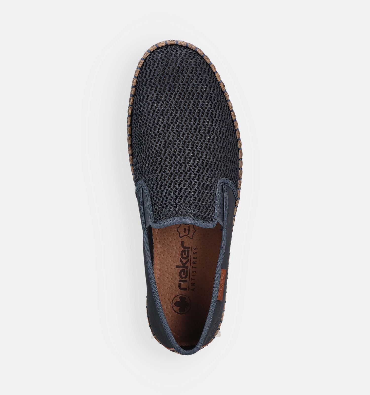 Ces chaussures plates pour hommes est fabriqué en textile ultrarobuste et son intérieur se compose de textile confortable. Ces matériaux de qualité sont particulièrement légers, un antidote à la sensation reconnaissable de pieds lourds après un certain temps. Ces chaussures plates Rieker en bleu pour hommes possède une fermeture à enfiler, élastique.